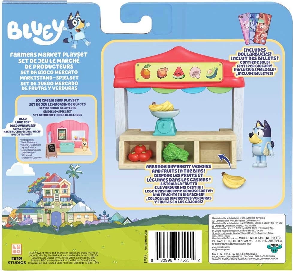 Das Set ist perfekt auf die motorischen Fähigkeiten von Vorschulkindern zugeschnitten und fördert durch Rollenspiele die Fantasie. Dank der Kompatibilität mit anderen Bluey-Figuren lässt sich der Marktbesuch beliebig erweitern. Ein bunter Stickerbogen sorgt zudem für individuellen Gestaltungsspaß beim Aufbau.