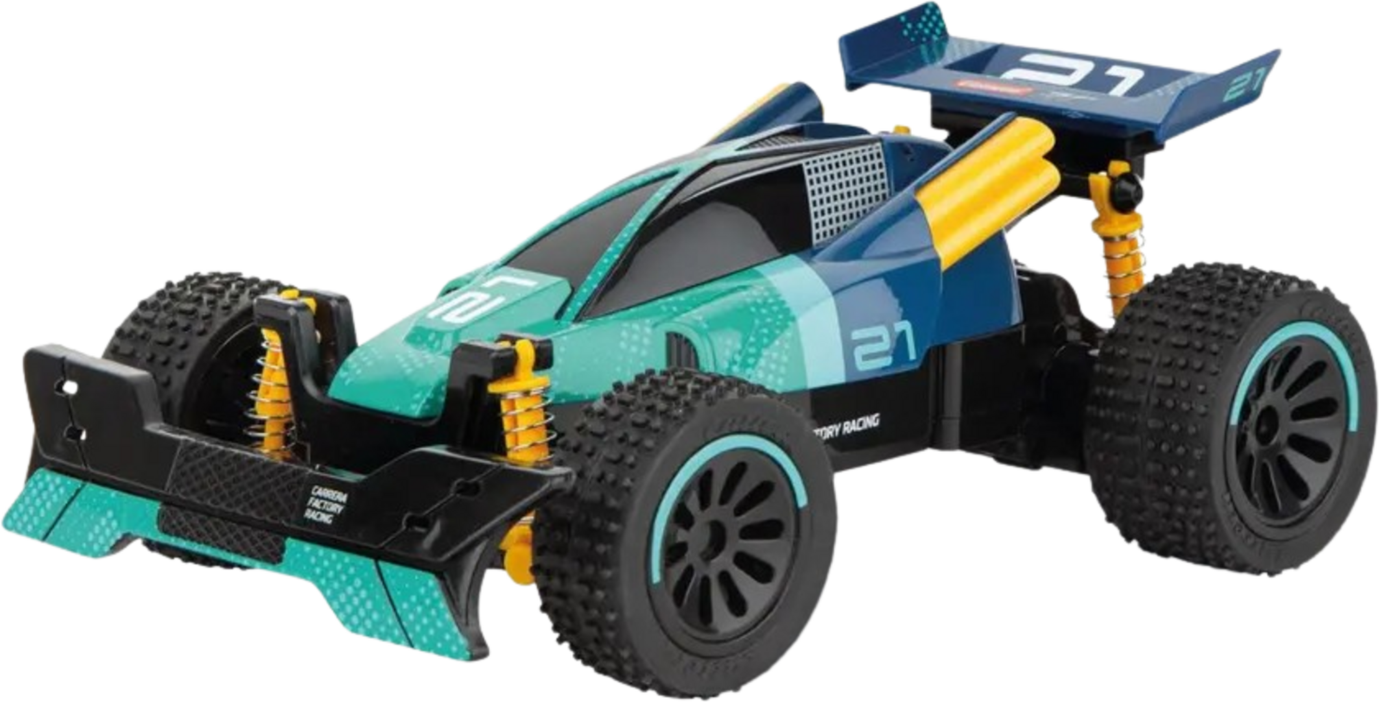 Mit dem Carrera Factory Racing #21 bist du bereit für packende Action auf jedem Untergrund. Dank der Vollfederung und den speziellen Geländereifen meistert dieses RC-Fahrzeug mühelos verschiedene Terrains, während das sportliche Design alle Blicke auf sich zieht.