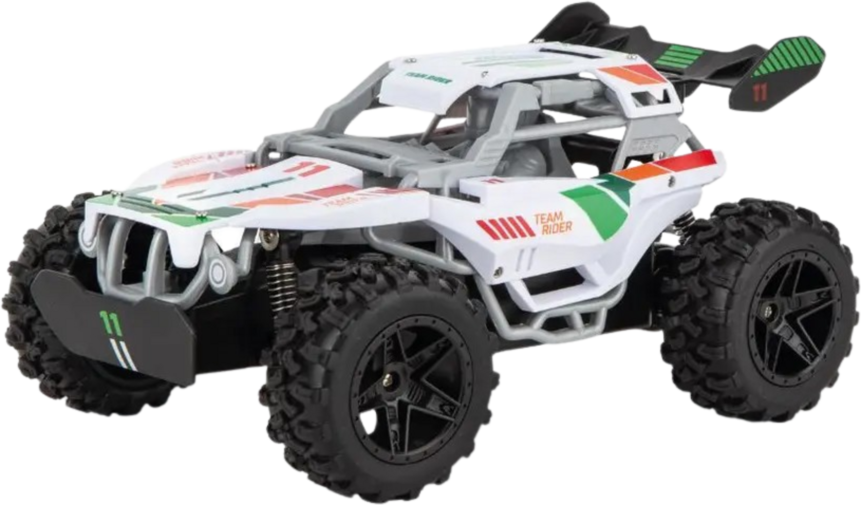 Starte dein nächstes Offroad-Abenteuer mit dem Carrera RC Team Rider! Dieser stylische Flitzer mit der markanten Startnummer 11 ist ein echter Blickfang auf jeder Piste und wartet nur darauf, von dir über das Gelände gejagt zu werden. Dank der robusten Bauweise und der Vollfederung bügelst du Unebenheiten einfach glatt.