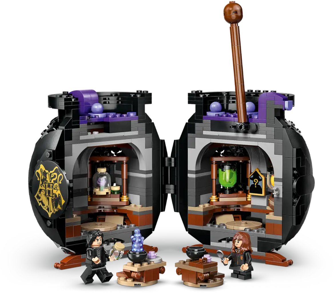 - Öffne den Zauberkessel & entdecke das geheime Klassenzimmer, in dem gerade der Zaubertrankunterricht stattfindet. Tische, Tafel, Fläschchen & weitere Zutaten können zum Spielen herausgenommen werden.