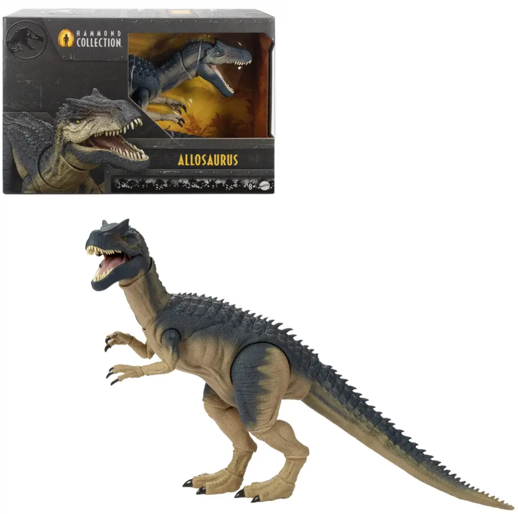 Der Hammond Collection Allosaurus ist eine besonders detailreiche Sammlerfigur aus der Jurassic-World-Reihe. Durch die Kombination aus realistischer Gestaltung, Glasaugen und vielen Bewegungspunkten wirkt er fast lebendig und eignet sich sowohl für dynamische Szenen als auch für die Präsentation in der Vitrine.