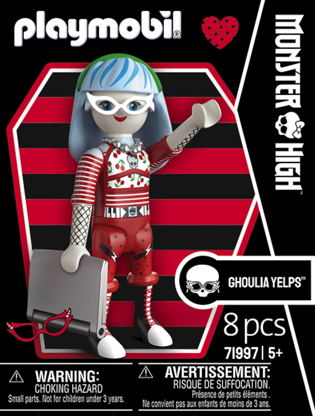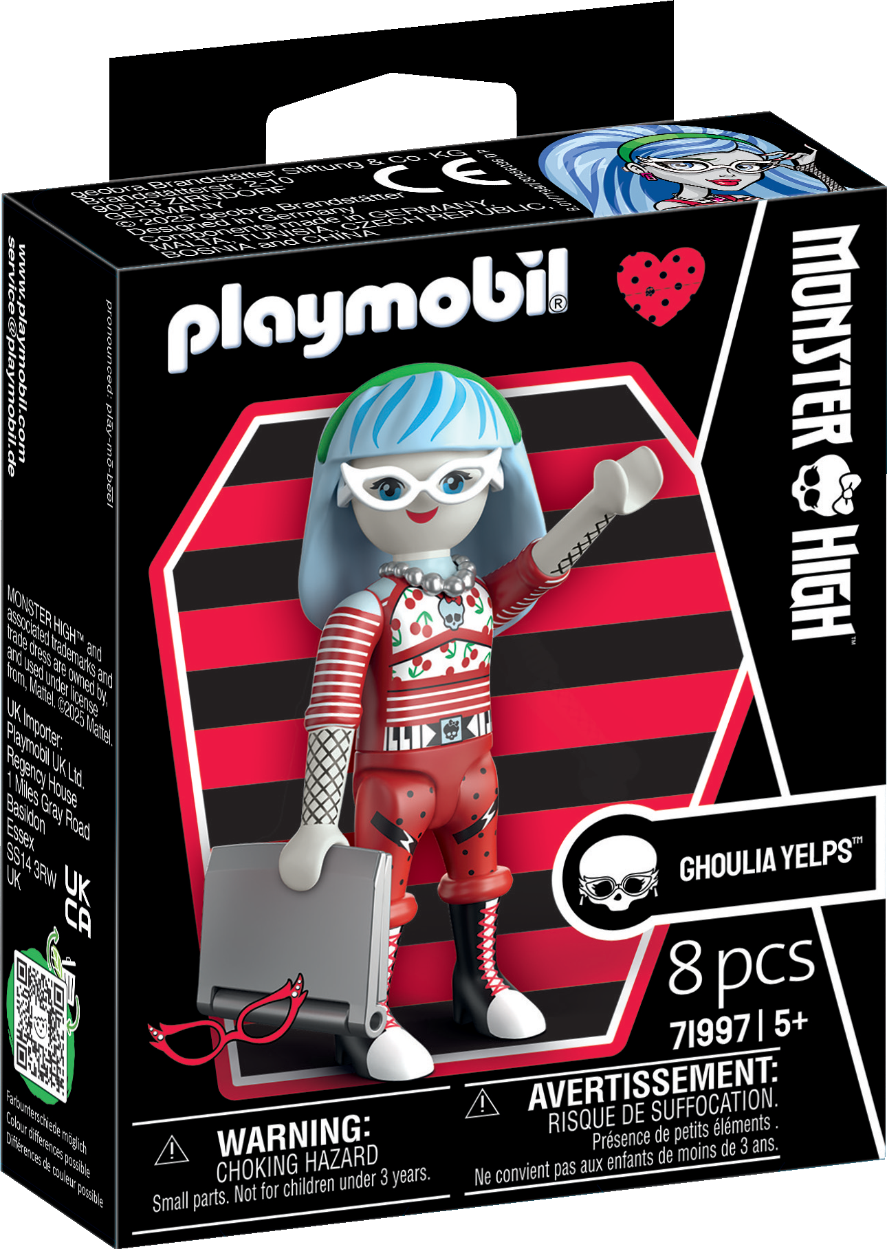 Direkt aus den Fluren der Monster High™ kommt die cleverste Ghoul der Schule jetzt als detailverliebte PLAYMOBIL-Figur zu dir nach Hause. Ghoulia Yelps ist sofort an ihrem ikonischen Look erkennbar. Die markante Brille, die blauen Haarsträhnen und ihr unverzichtbarer Ghoul-Tech-Laptop dürfen natürlich nicht fehlen. Mit dieser Figur kannst du die unheimlich-coolen Momente der Serie nachspielen oder völlig neue Abenteuer für die schlaue Schülerin erfinden. Dank der modularen PLAYMOBIL-Teile lässt sich Ghoulia individuell gestalten und für jede Szene anpassen, sei es beim digitalen Rätsellösen oder beim Treffen mit ihren Freundinnen.