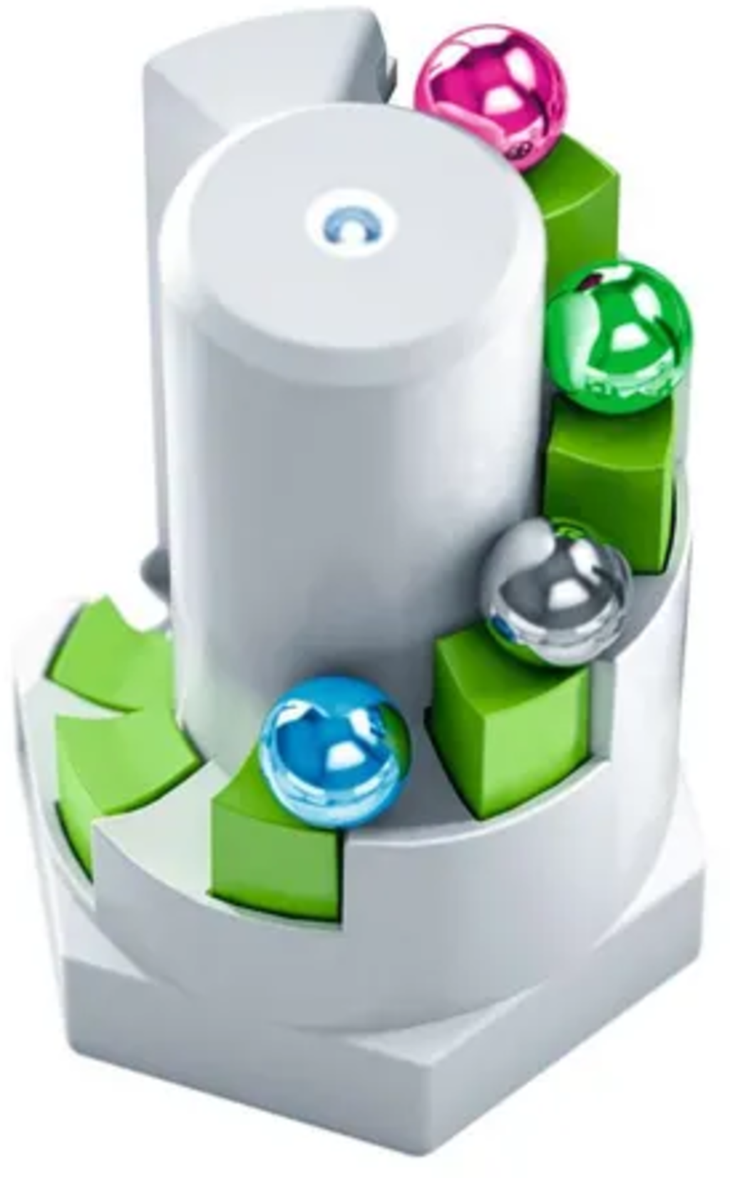 Der Element Elevator hebt gleichzeitig mehrere Kugeln bis zu 7 Höhensteine nach oben. Die Kugeln werden dabei automatisch über die Lifttreppe aufwärts geschickt.
