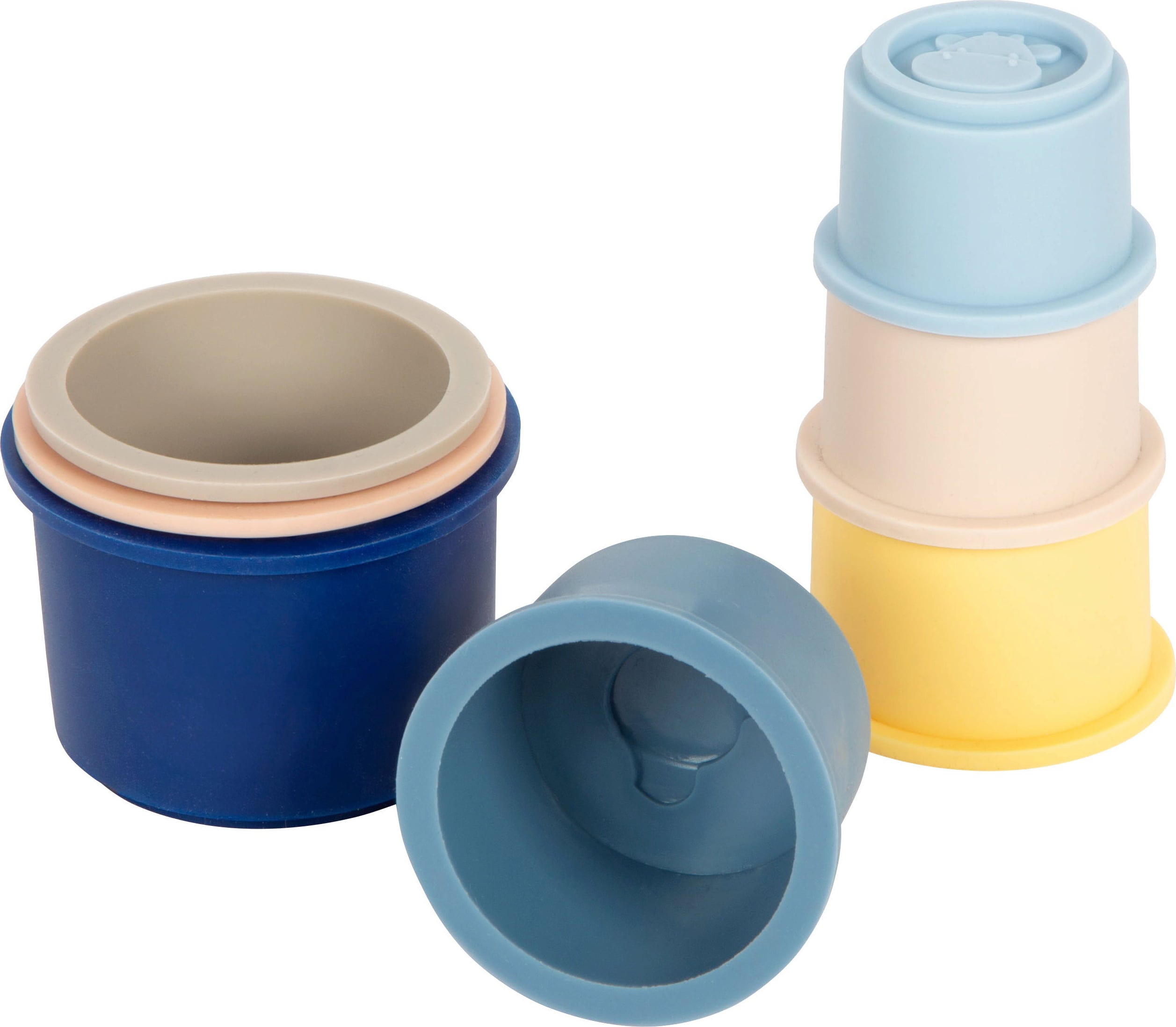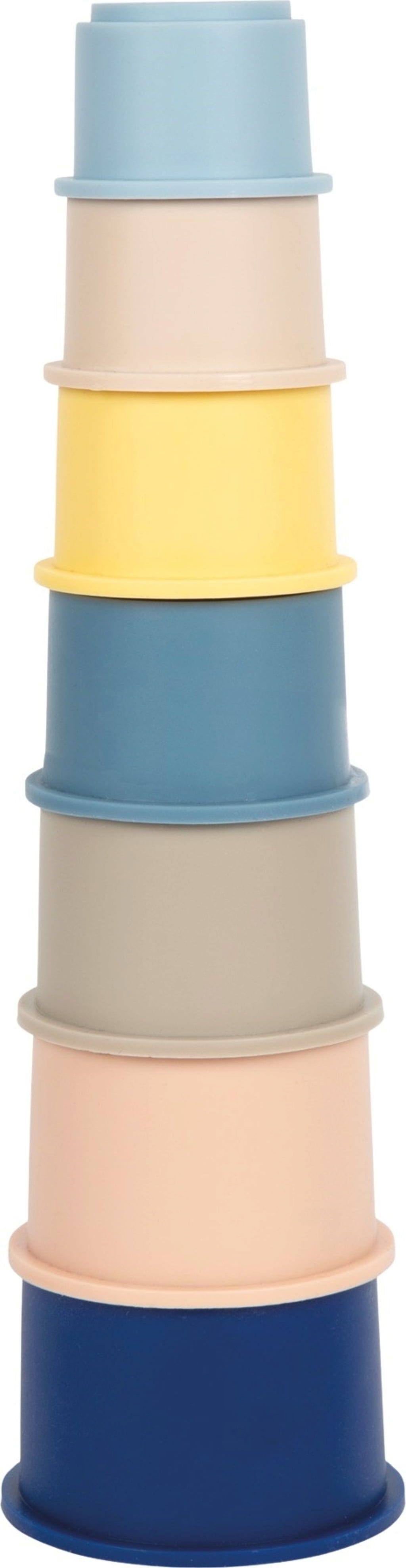 Die bunten Silikon-Stapelbecher machen Kindern spielerisch das Stapeln, Sortieren und Entdecken leicht. Ob drinnen, am Strand oder im Sandkasten – das Set regt die Sinne an und trainiert motorische Fähigkeiten auf spielerische Weise.