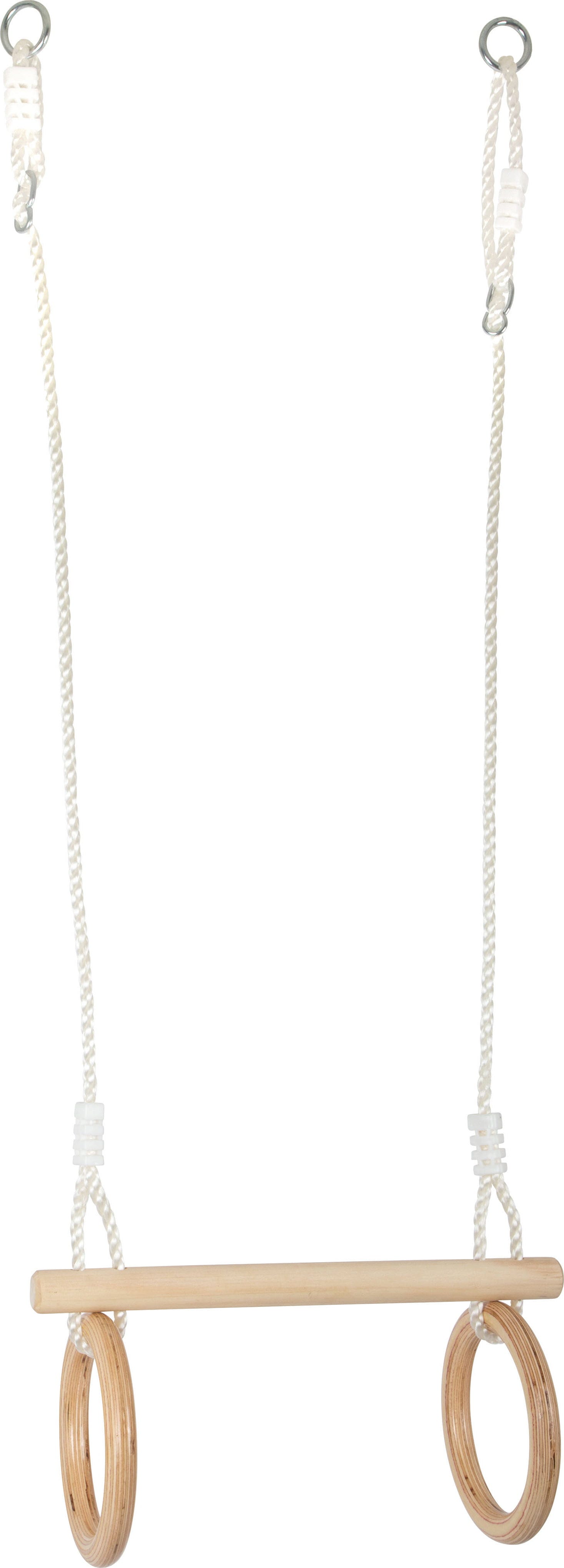Dieses vielseitige Sportgerät bringt Bewegung ins Spiel und verwandelt den Garten oder das Kinderzimmer in eine kleine Zirkusarena. Die clevere 2-in-1 Kombination bietet sowohl ein stabiles Holztrapez zum Sitzen und Turnen als auch klassische Turnringe für erste akrobatische Übungen. Die Trapezstange hält die Ringe auf konstantem Abstand, was die Turnanfänge deutlich erleichtert.