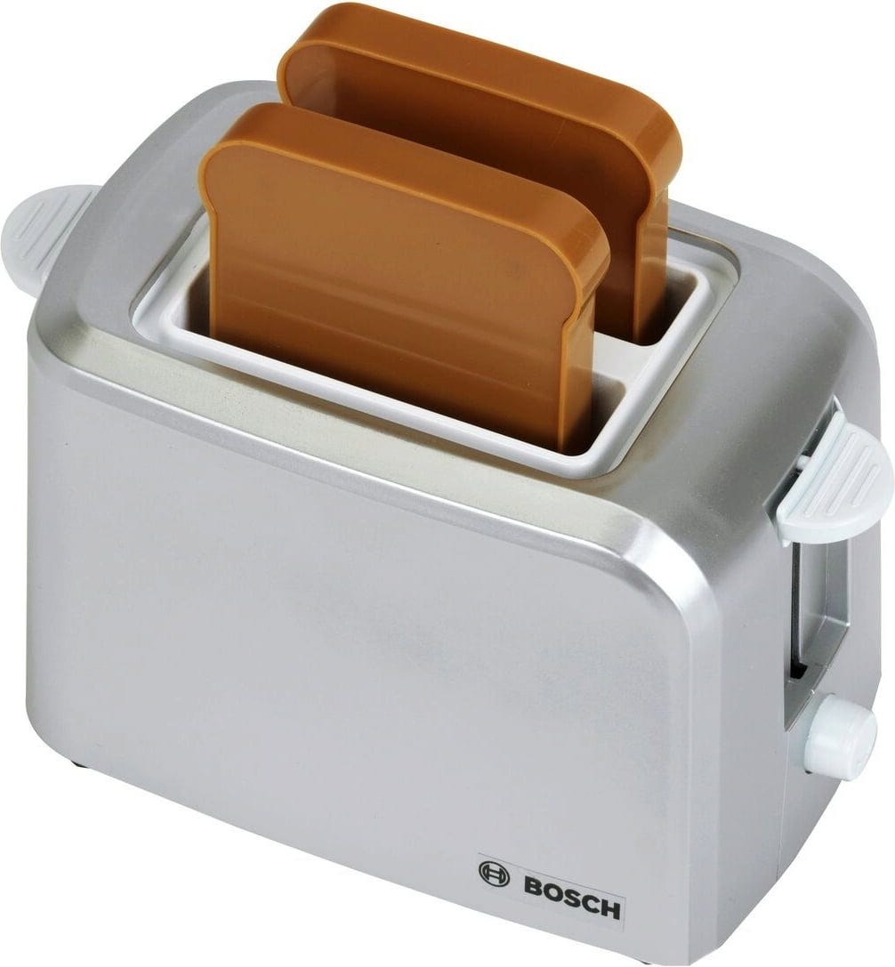 Mit diesem schicken Spielzeug-Toaster im originalgetreuen Bosch-Design können Kinder ihre eigene Mahlzeit zubereiten – ganz ohne heiße Finger! Die Kinder legen die zwei mitgelieferten Toastscheiben in die Schlitze und betätigen den Hebel. Durch Drehen am Schalter wird die „Röstzeit“ eingestellt, bis die Toasts nach kurzer Zeit wie von Zauberhand mit einem mechanischen „Plopp“ nach oben springen. Dieses täuschend echte Erlebnis kommt völlig ohne Strom oder Hitze aus, sodass der Nachwuchs gefahrlos in die Rolle der Gastgeber schlüpfen kann. Ob für das Picknick mit den Stofftieren oder das Sonntagsfrühstück mit den Eltern – dieser Toaster ist ein unverzichtbares Highlight für jede Kinderküche.