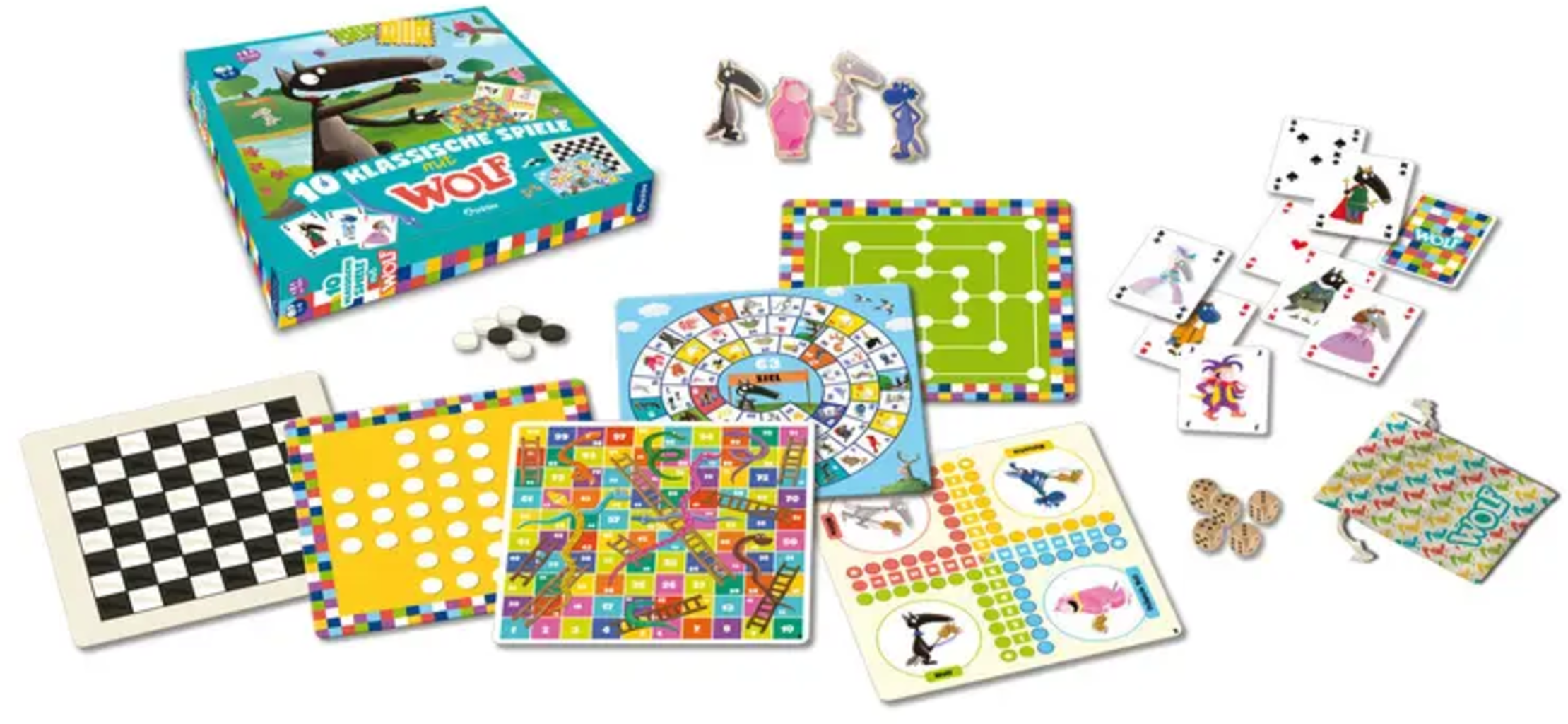 Diese liebevoll gestaltete Spielesammlung bringt 10 beliebte Klassiker in einem Set. Ob Dame, Mau-Mau oder Schlangen & Leitern – hier ist für jeden etwas dabei! Perfekt für spannende Spielrunden mit der Familie.