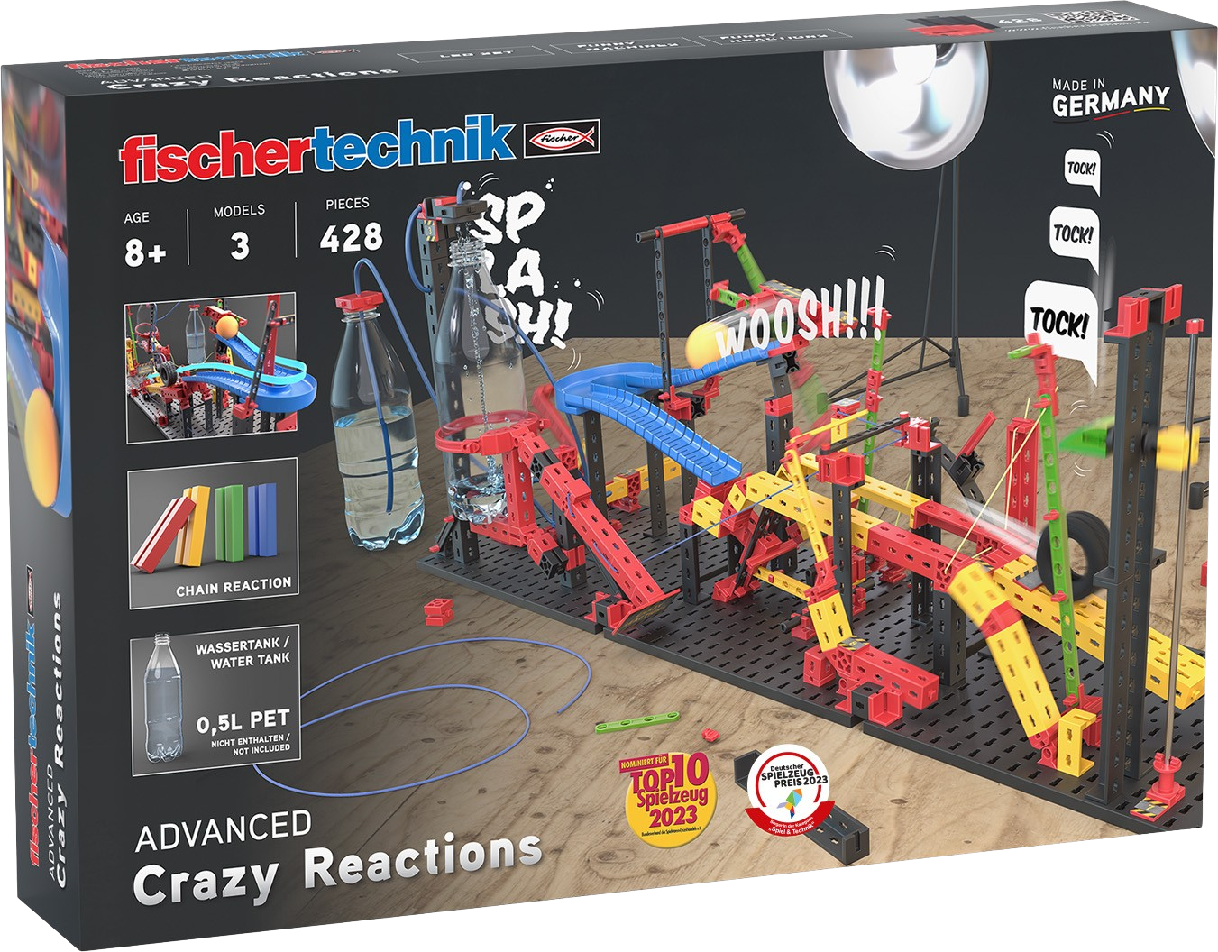 With Crazy Reactions, children can experience action-packed chain reactions right in the nursery. A starting impulse sets off a series of movements in which the pulley, lever and gears interact. The models can be customised by integrating everyday objects, so there are no limits to imagination and creativity. An educational, exciting set for little engineers.