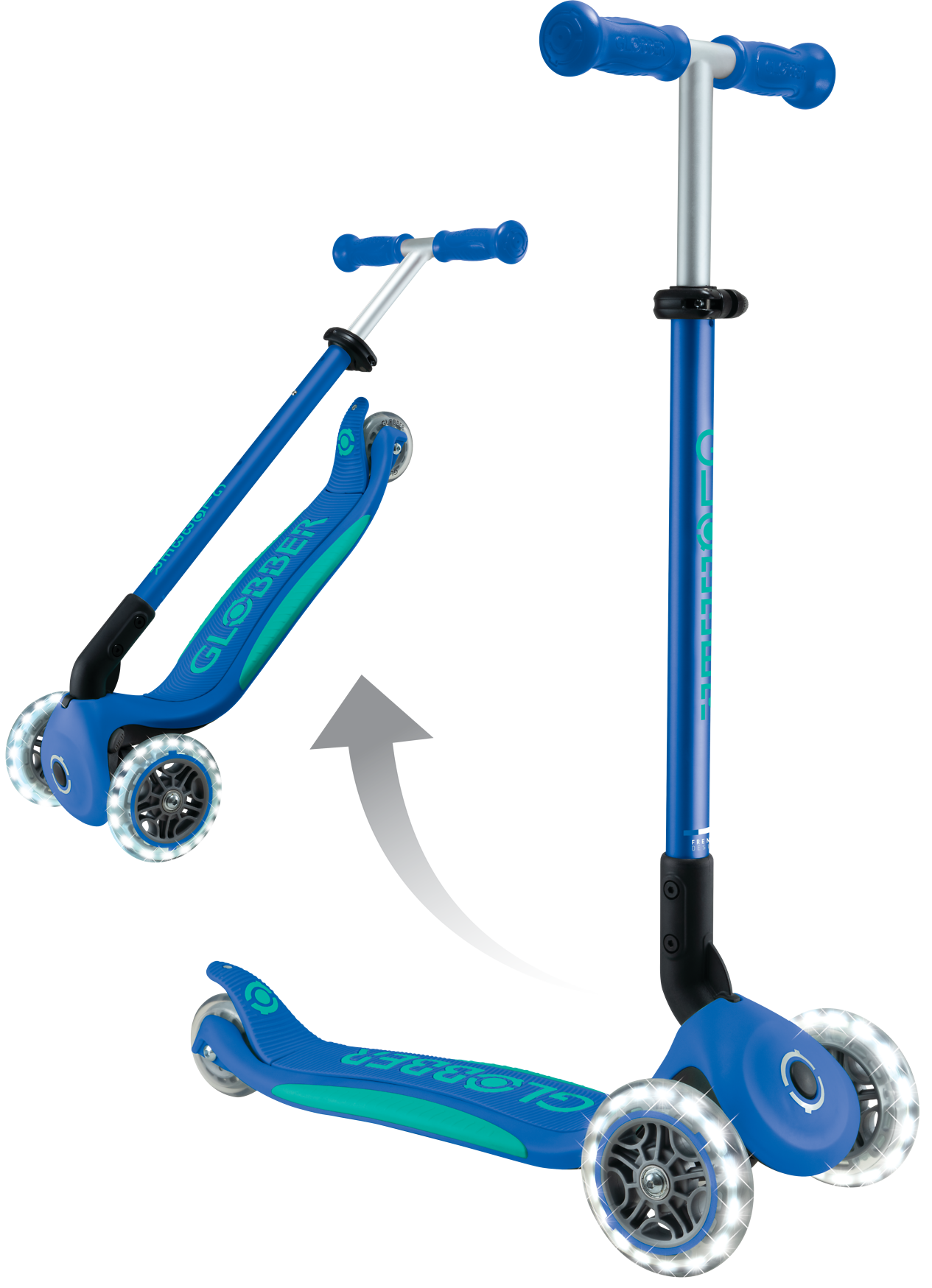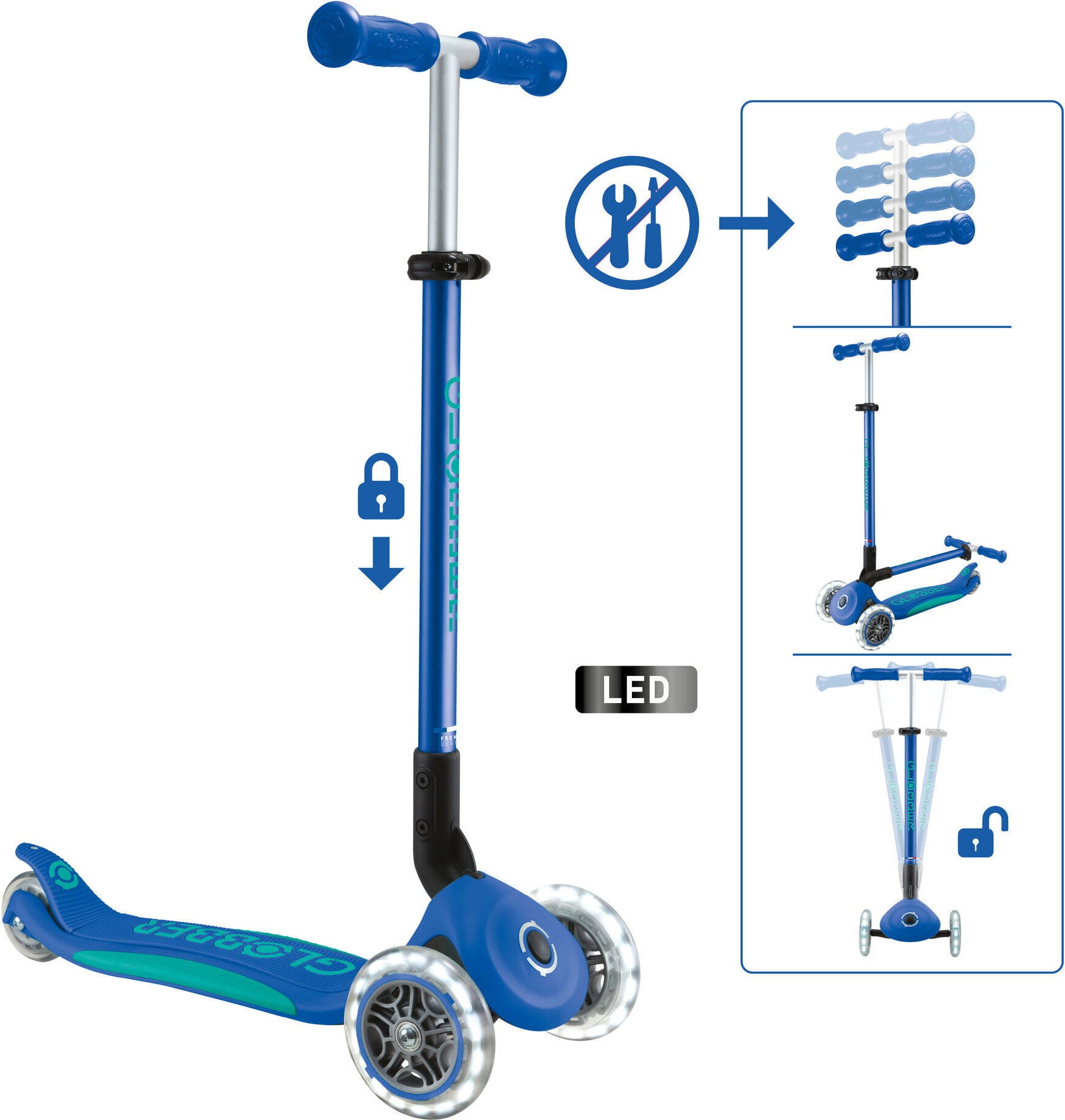 Globber Scooter Primo Foldable Plus Lights, dark blue-turquoise