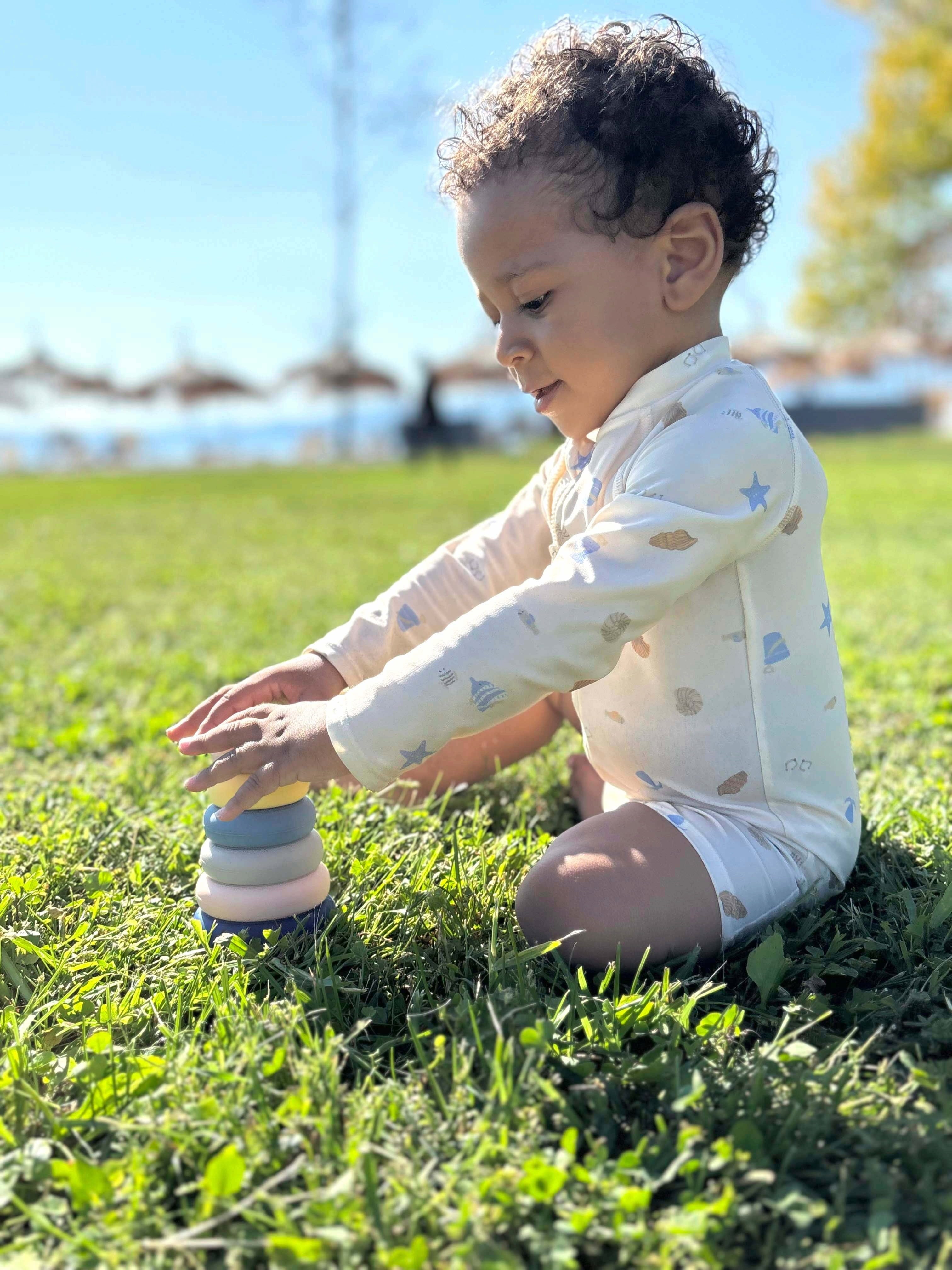 The colourful silicone stacking tower is a fun way to discover shapes, colours and balance. Children can stack towers, combine elements or discover new play ideas in water and sand - perfect for creative, motor and sensory play.