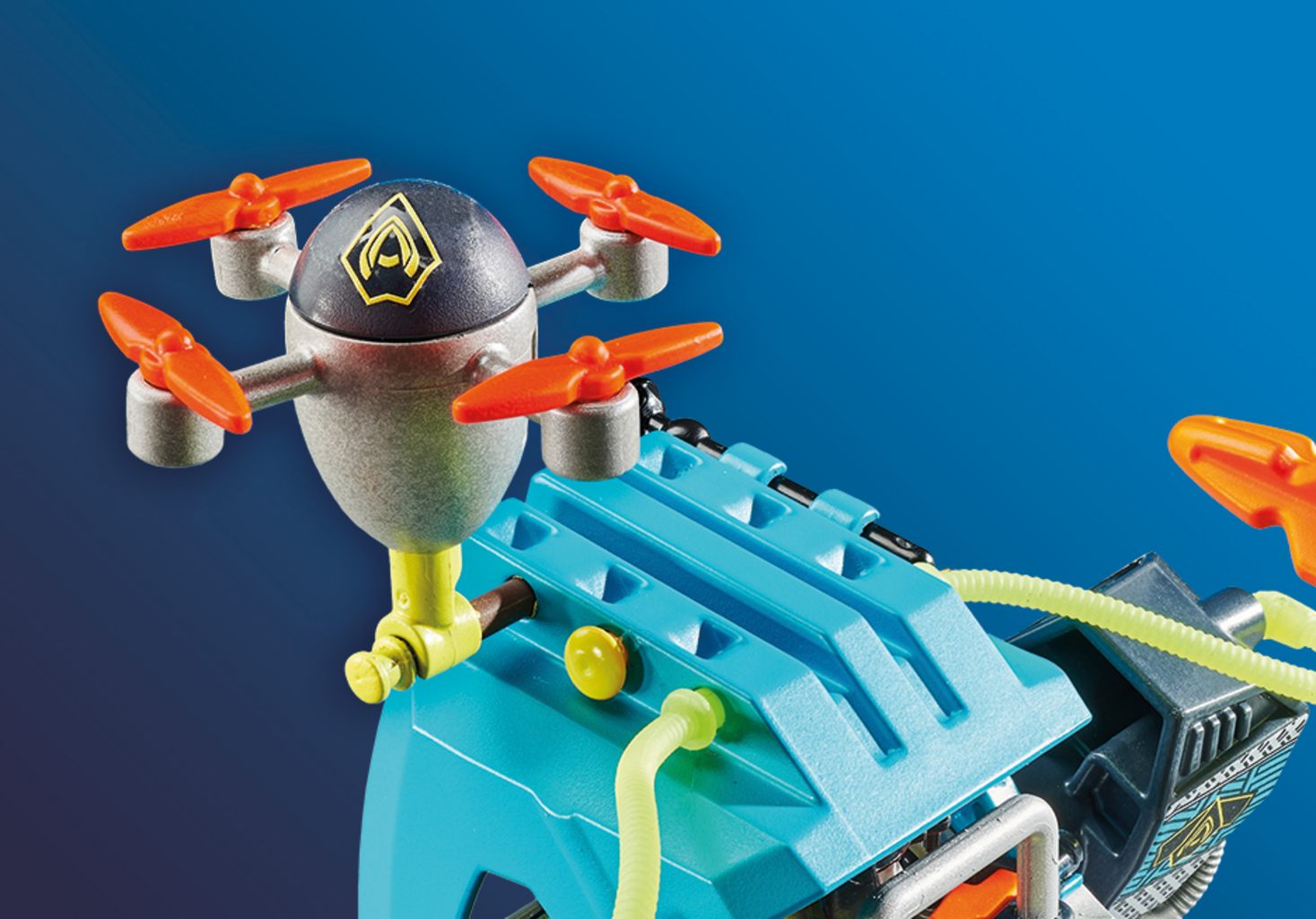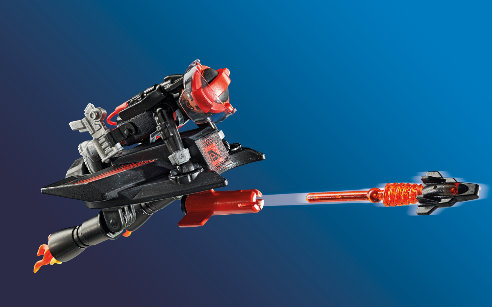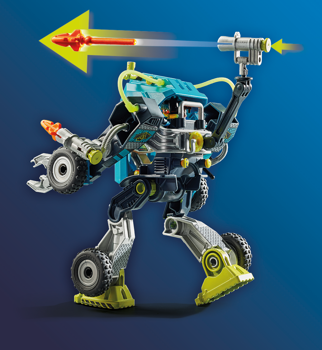 - Accessories: 1 helmet with visor, 1 helmet with headset, 3 cannons, 3 hoses, 1 flying glider with firing function incl. two projectiles, 2 nozzles with fire, 1 movable and mobile robot with various accessories
