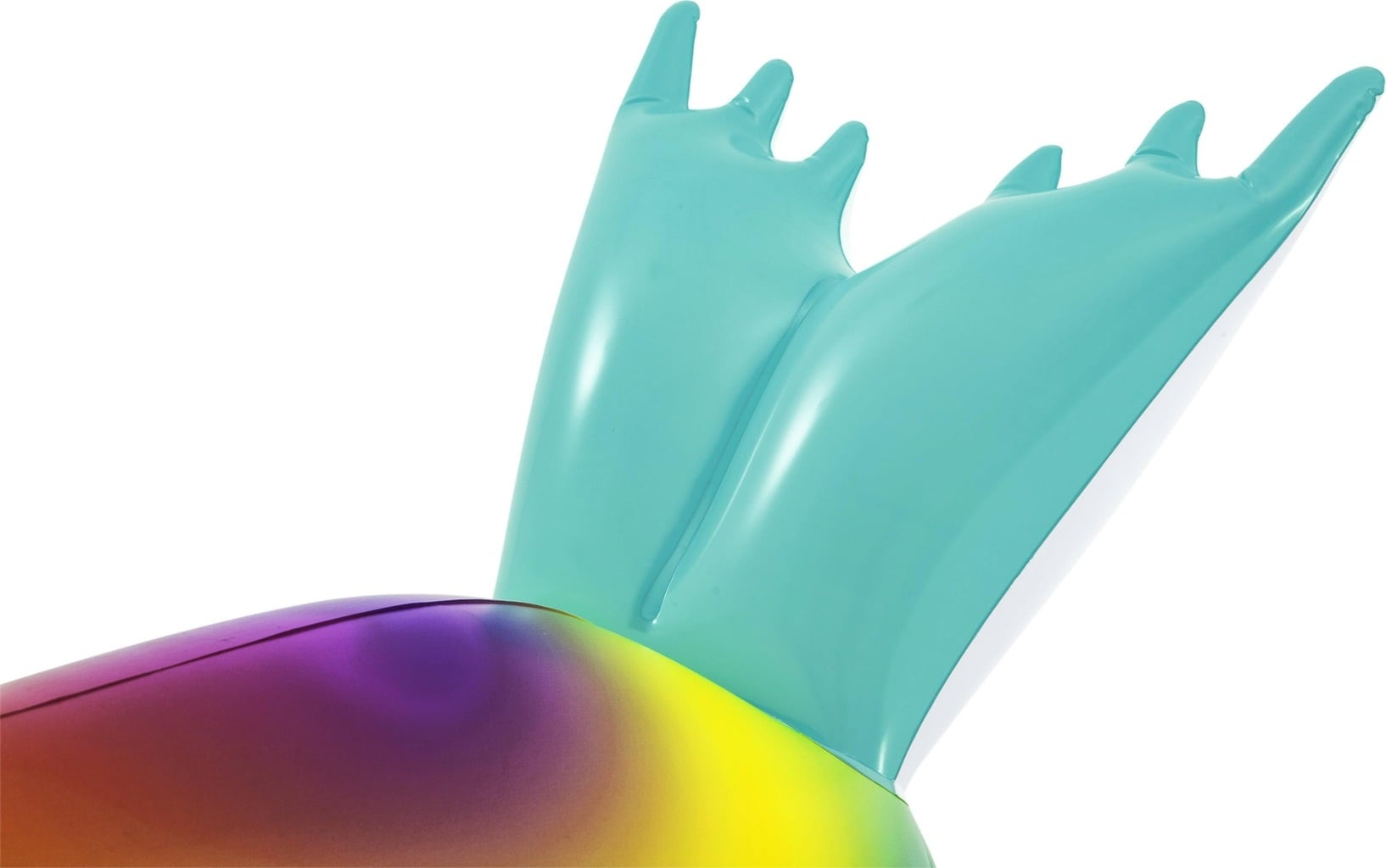 Ses poignées robustes offrent une prise en main sûre pour garder facilement l’équilibre, tandis que sa queue et ses nageoires gonflables apportent une stabilité optimale. Léger et pratique, il se gonfle en quelques instants et se replie tout aussi rapidement pour être rangé après la baignade. Conçu en PVC résistant, il vous accompagnera fidèlement tout au long de nombreux étés.