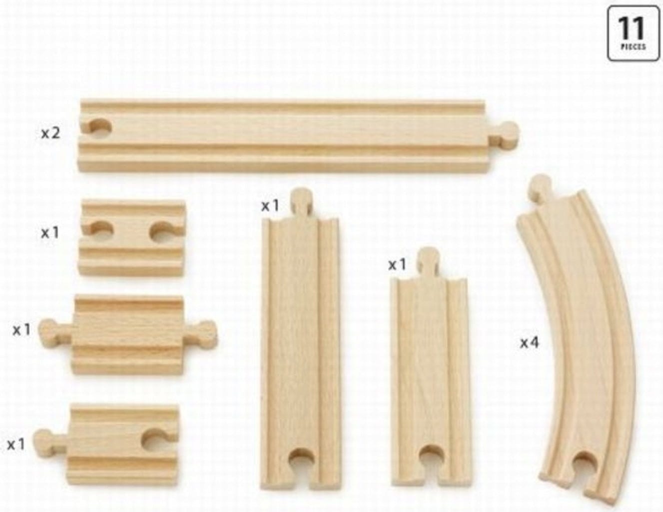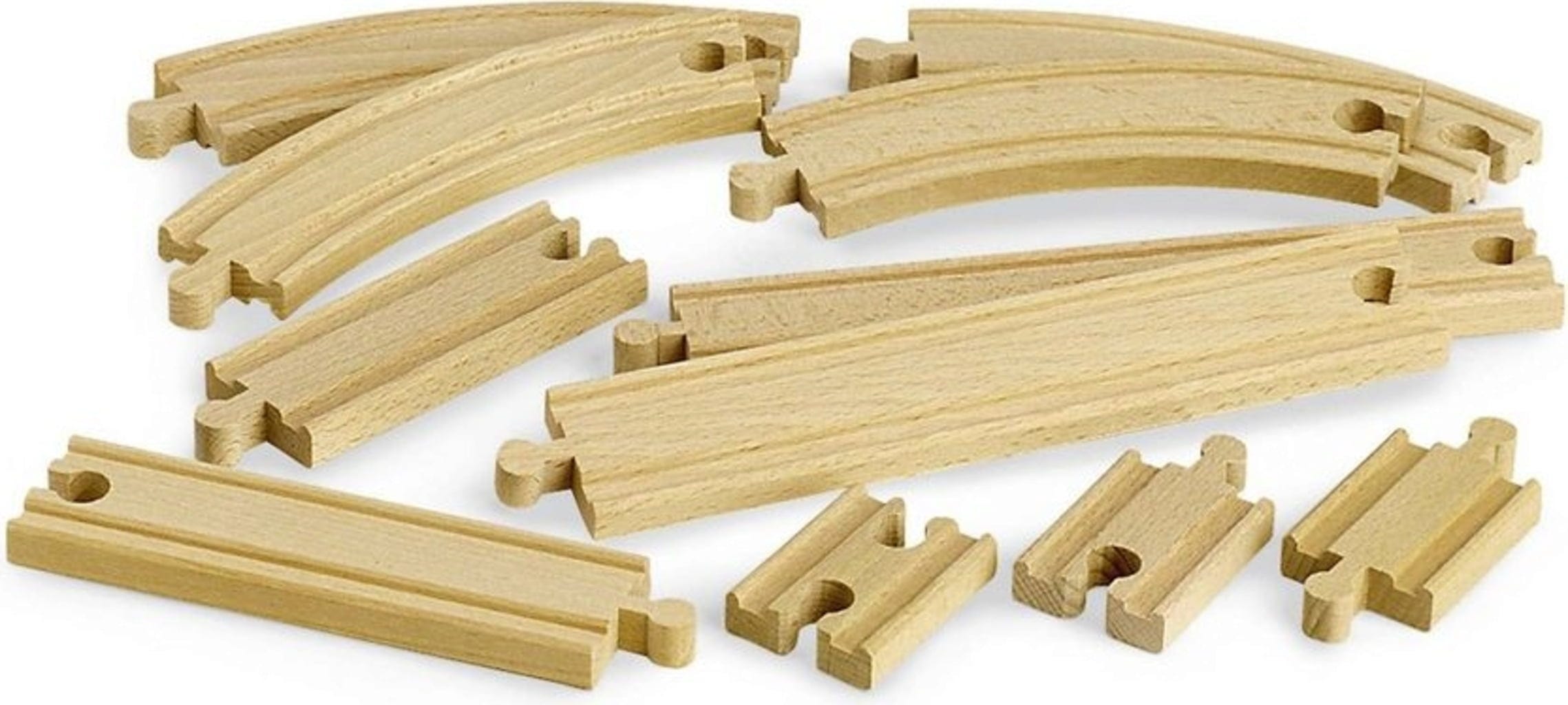 Un total de 11 éléments de rail offre de nombreuses nouvelles possibilités pour étendre le réseau ferroviaire BRIO dans la chambre d'enfant. Les pièces en bois de hêtre de haute qualité s'assemblent parfaitement.