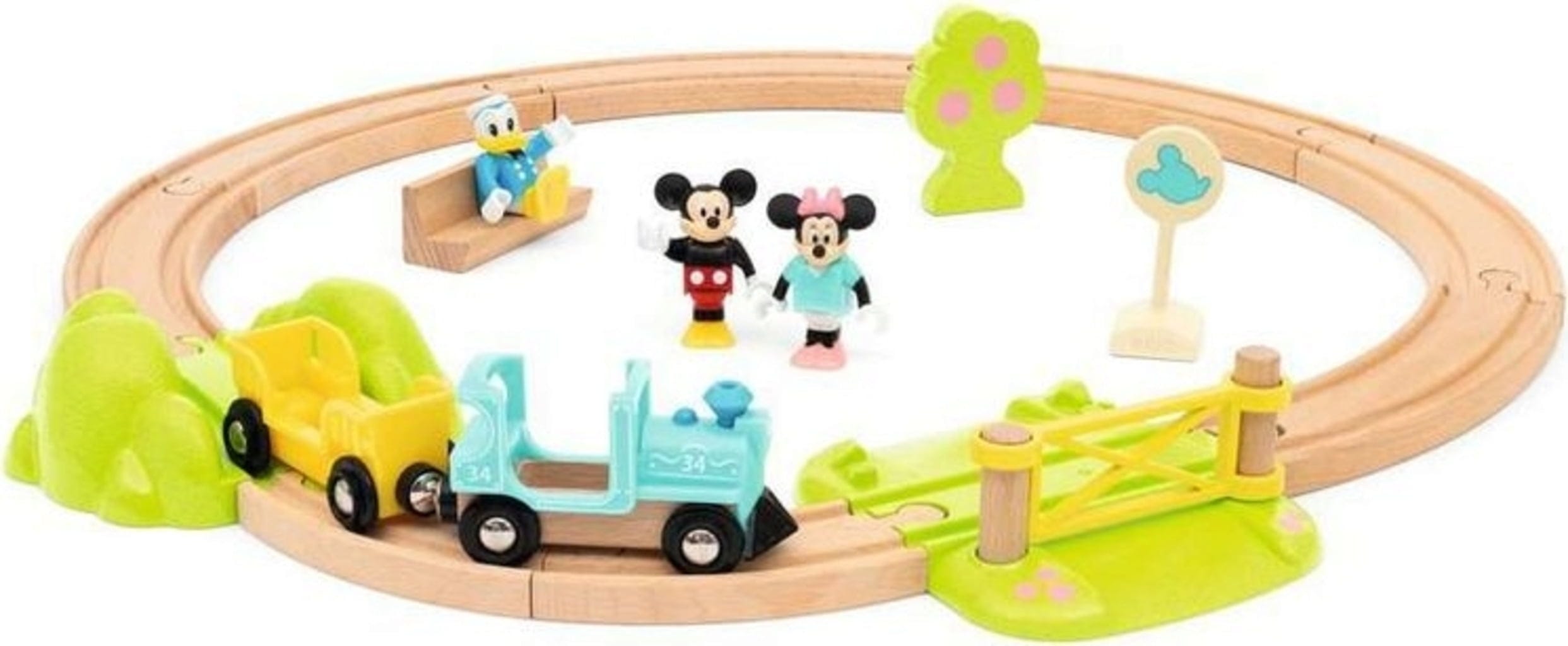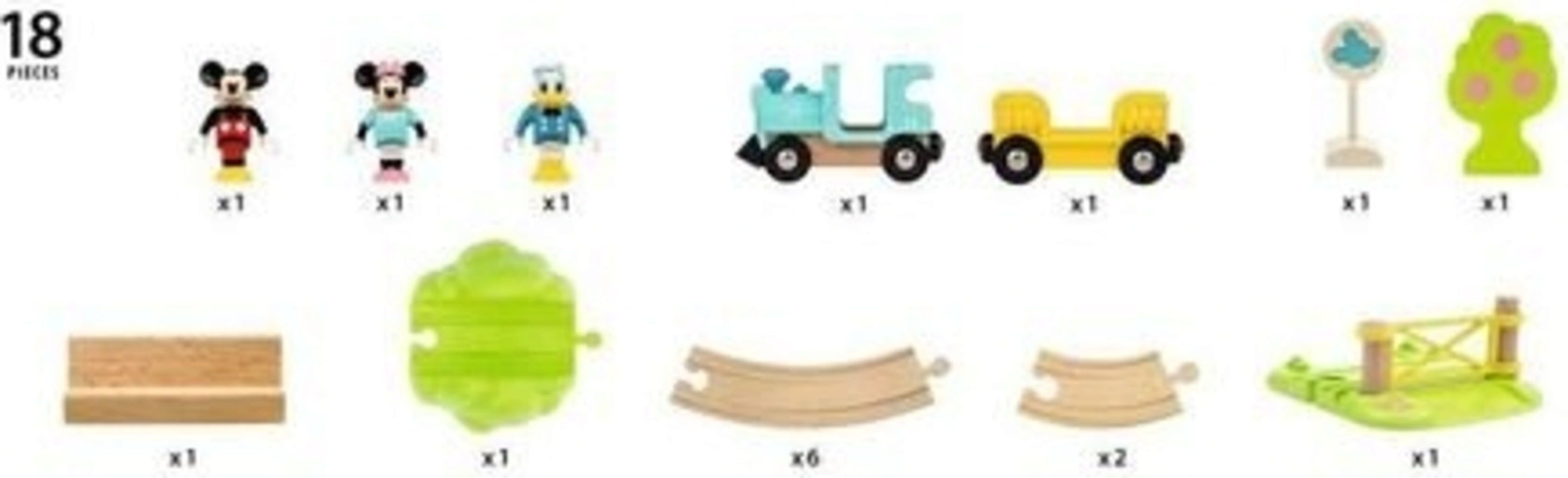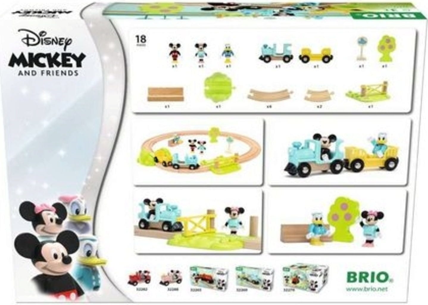 Mickey, Minnie et Donald partent pour un grand voyage. Les stars de Duckburg attendent un ensemble de train en bois de 18 pièces, avec la qualité habituelle de BRIO. En plus des trois figurines, il comprend une locomotive avec un wagon, diverses sections de voie et des accessoires amusants. Le système magnétique éprouvé étant utilisé, l'ensemble peut être combiné avec tous les autres produits de train BRIO.