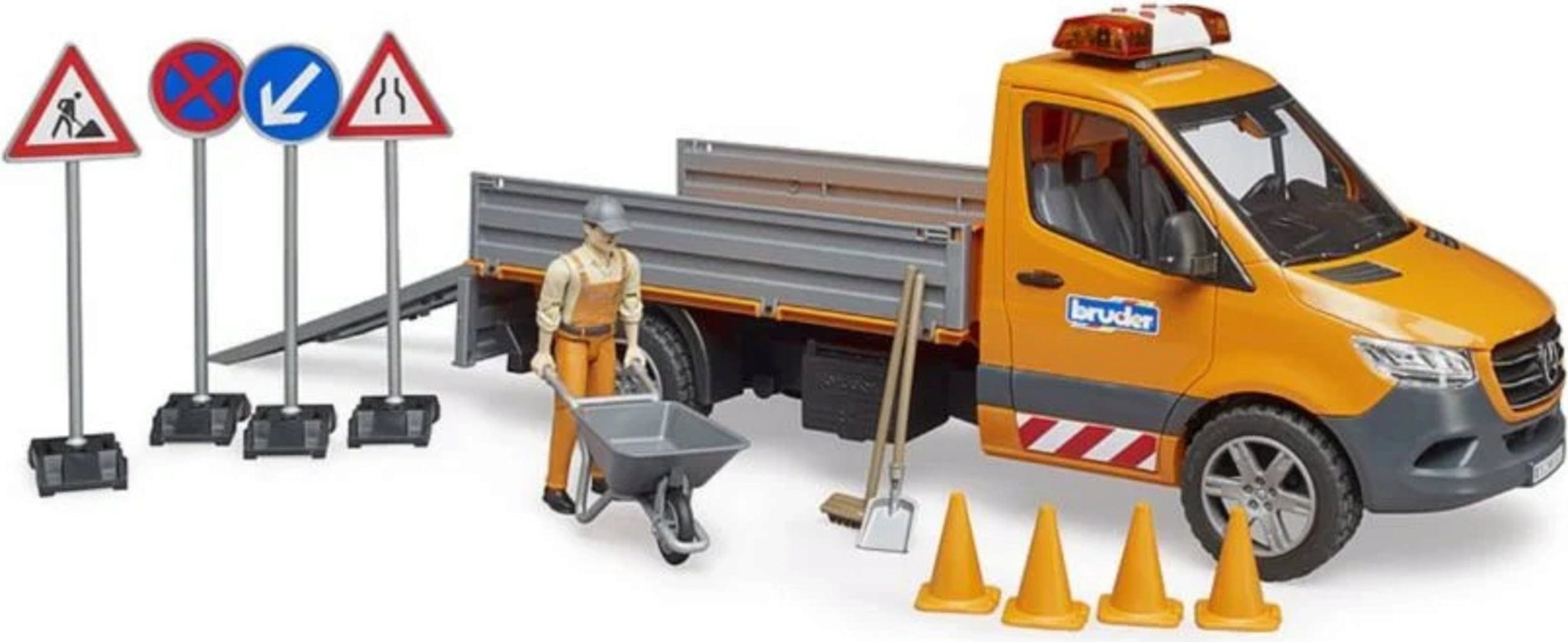 - Accessoires : figurine, outils, brouette, panneaux de signalisation, cônes