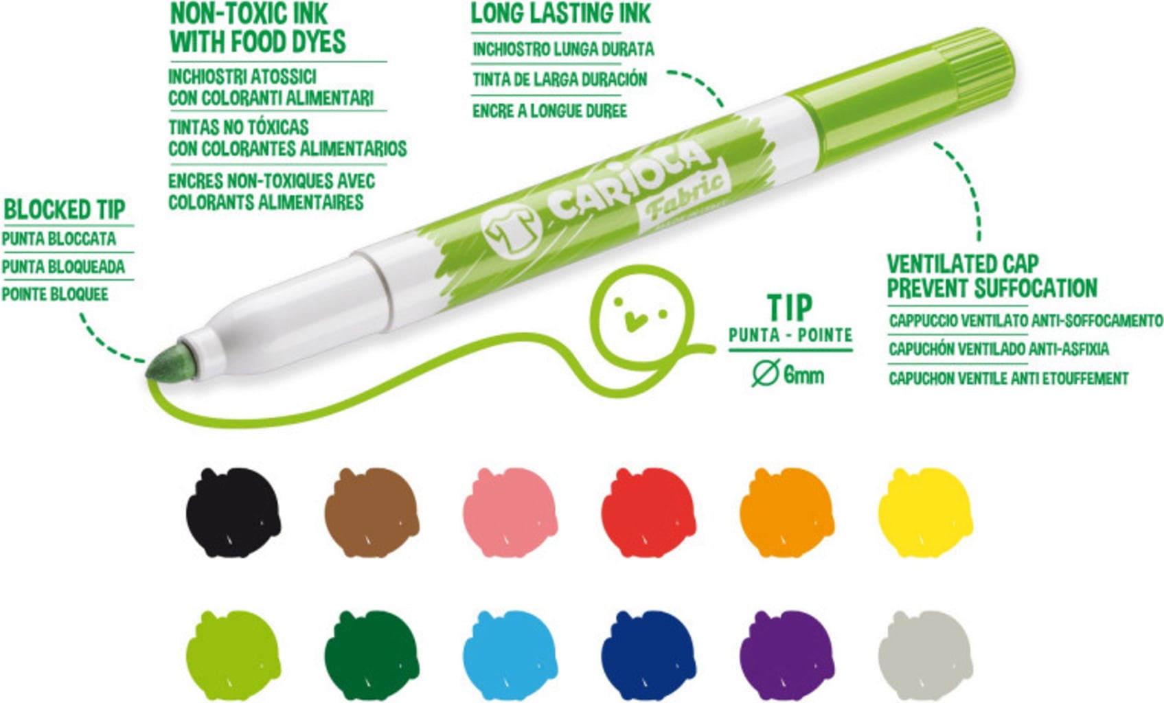 Carioca Feutres pour Tissu Pointe Maxi Fabric, 12 pièces