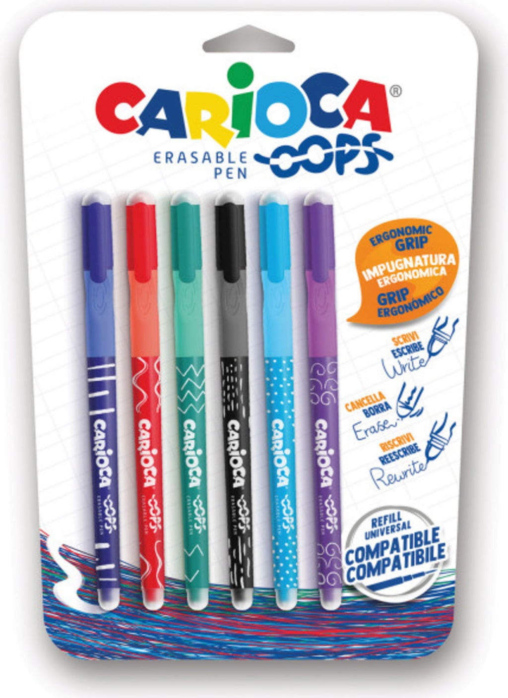 Carioca Rollers Effaçables OOPS Easy Assortis, 6 pièces