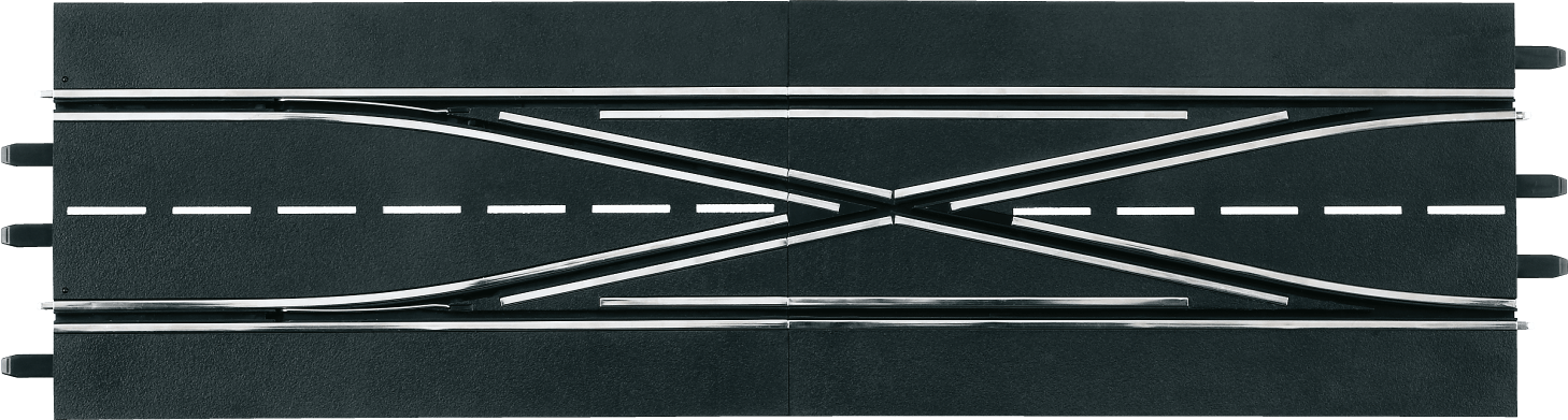 Un double aiguillage dans le circuit de course est l’élément idéal pour rendre votre circuit plus dynamique et stratégique. Ce tronçon permet de rouler dans le sillage de l'adversaire ou de ralentir la concurrence, et ouvre la voie à de toutes nouvelles manœuvres de dépassement.