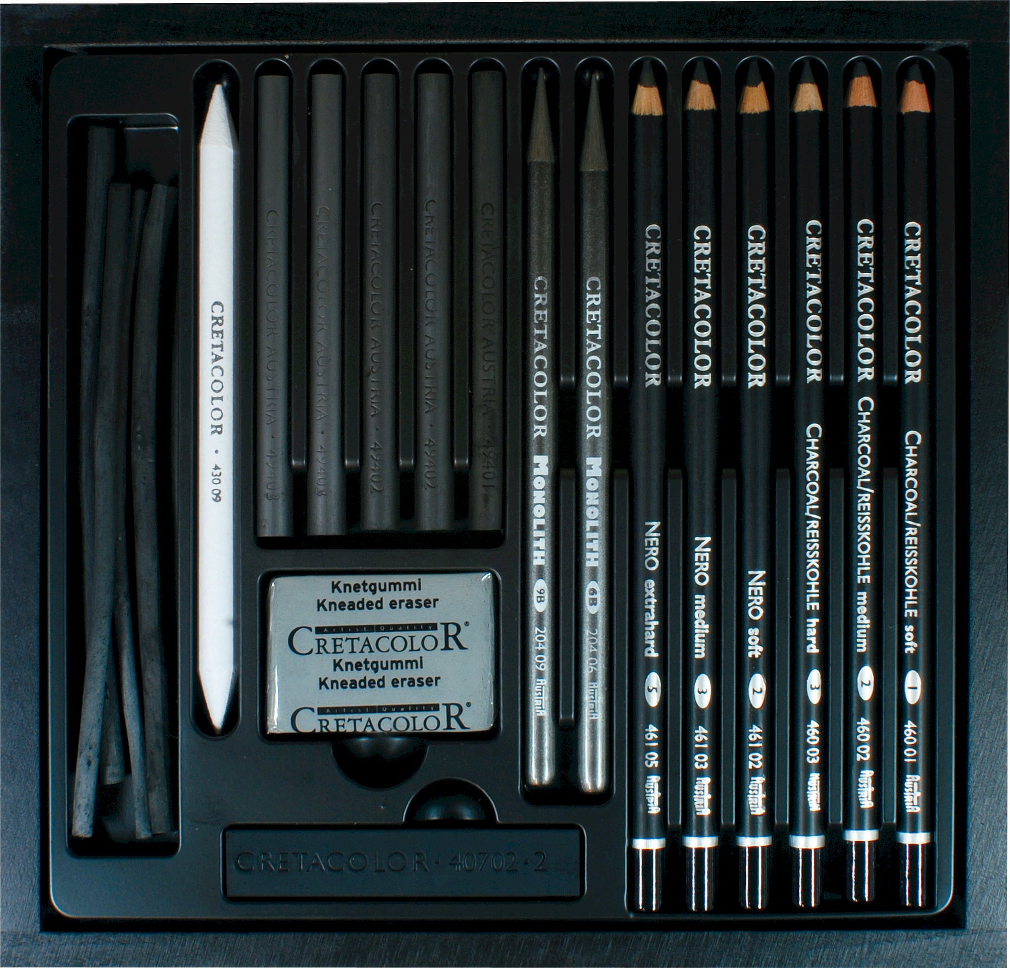 Créez une variété d'effets avec cet ensemble pour fusain et dessin. Une feuille de papier, votre créativité... et vous pouvez commencer !