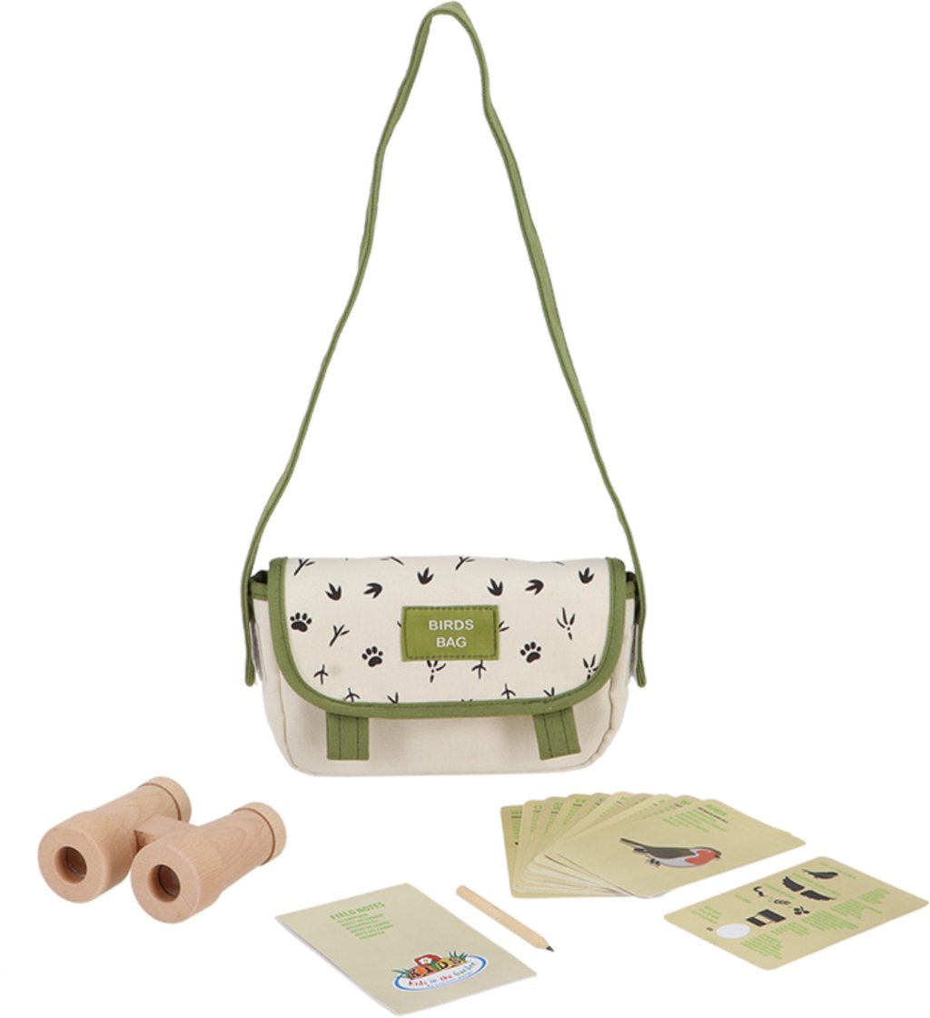 Le sac d'exploration pour l'observation des oiseaux est le kit parfait pour les petits naturalistes ! Le kit contient un sac pratique, des jumelles en bois, des fiches informatives sur différentes espèces d'oiseaux en plusieurs langues et un bloc avec un stylo : tout ce dont vous avez besoin pour des observations passionnantes ! Alors, attrapez votre sac d'explorateur et vivez des heures passionnantes dans la nature.