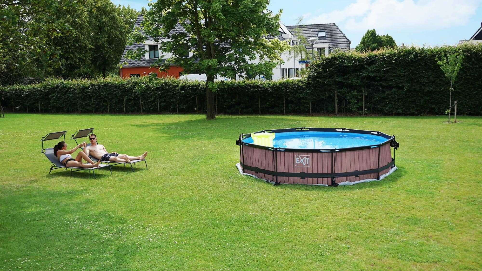 Cette piscine en tôle grise d'Exit assure un plaisir sans fin pour vos prochains été. Le beau motif de pierre fait de cette piscine un très bel équipement pour le jardin.