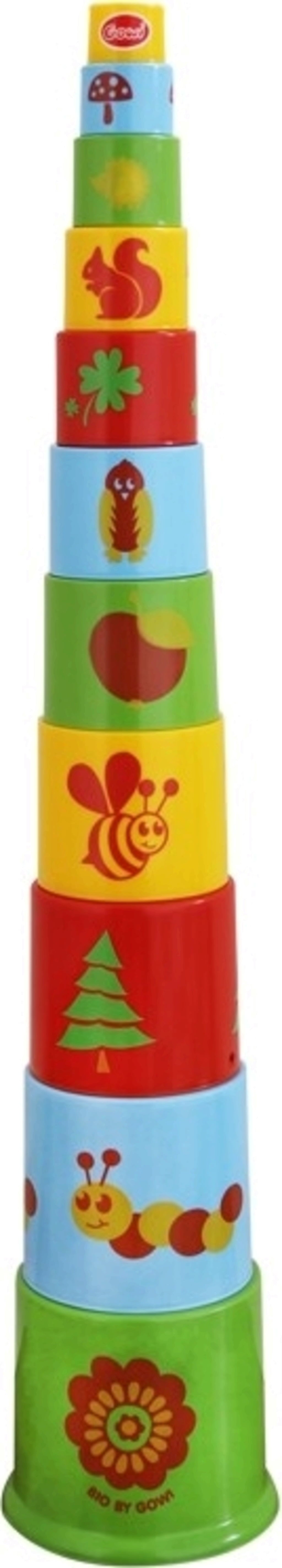 Les enfants ne manqueront pas de s'émerveiller devant cette pyramide à empiler de GOWI. Ses couleurs vives et ses motifs adorables stimulent la créativité des enfants et les invitent à jouer et à empiler encore et encore.