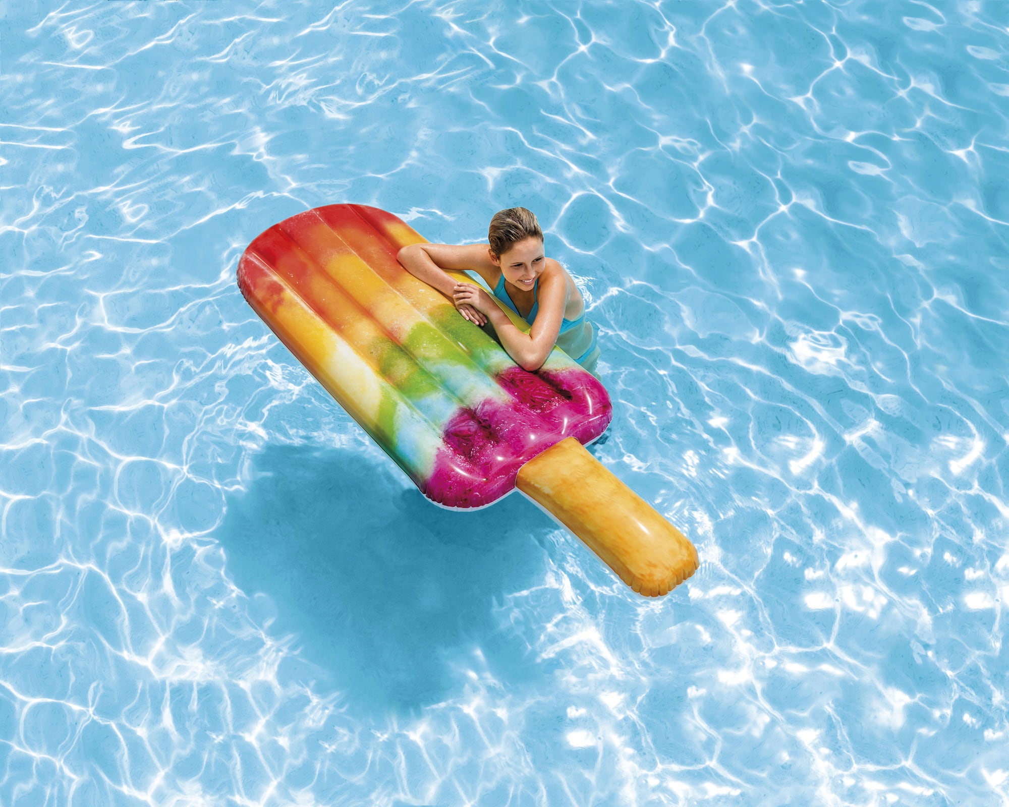 Les couleurs vives de ce matelas gonflable au look tendance glace à l'eau garantissent plaisir et détente dans la piscine.