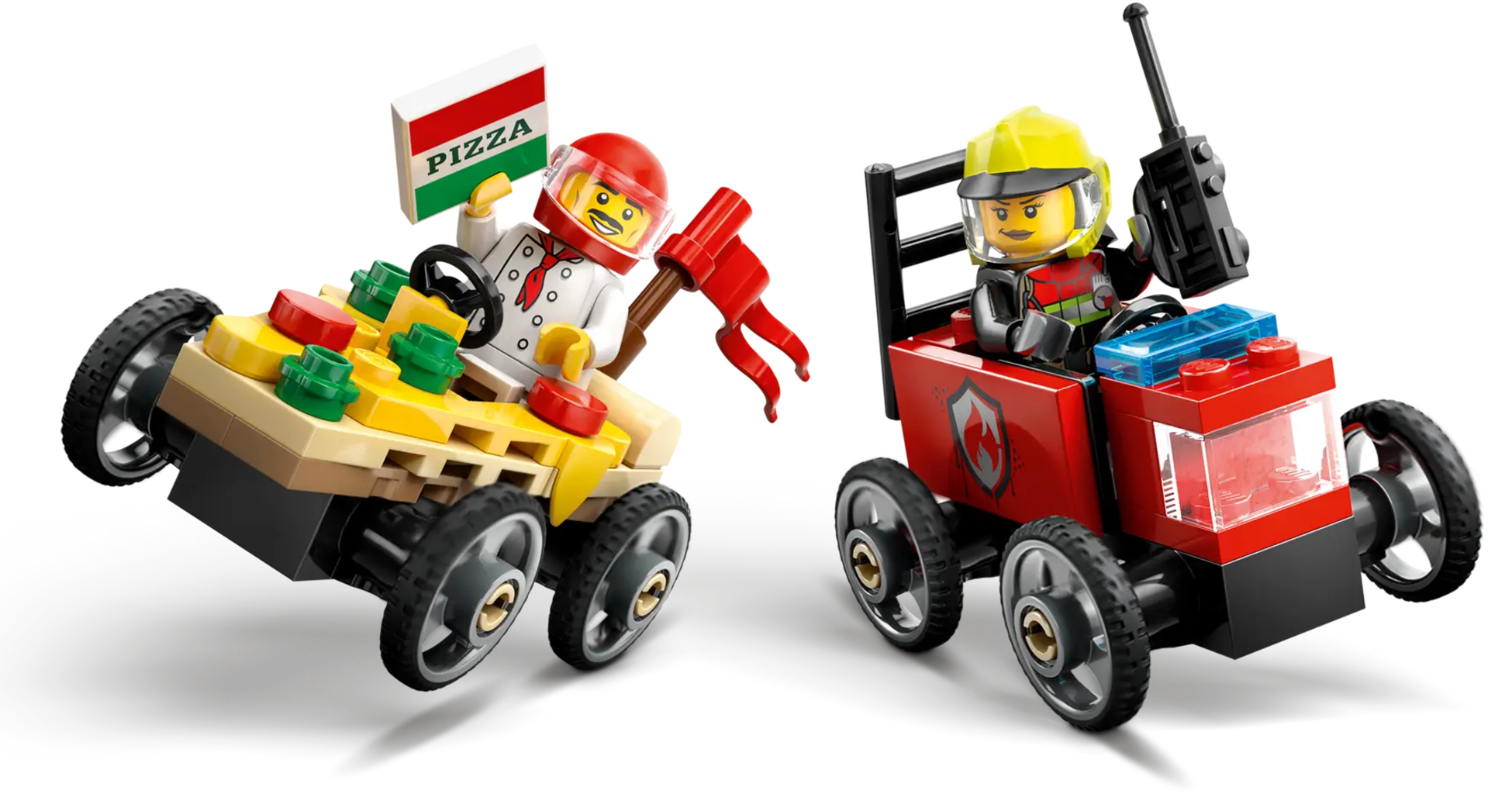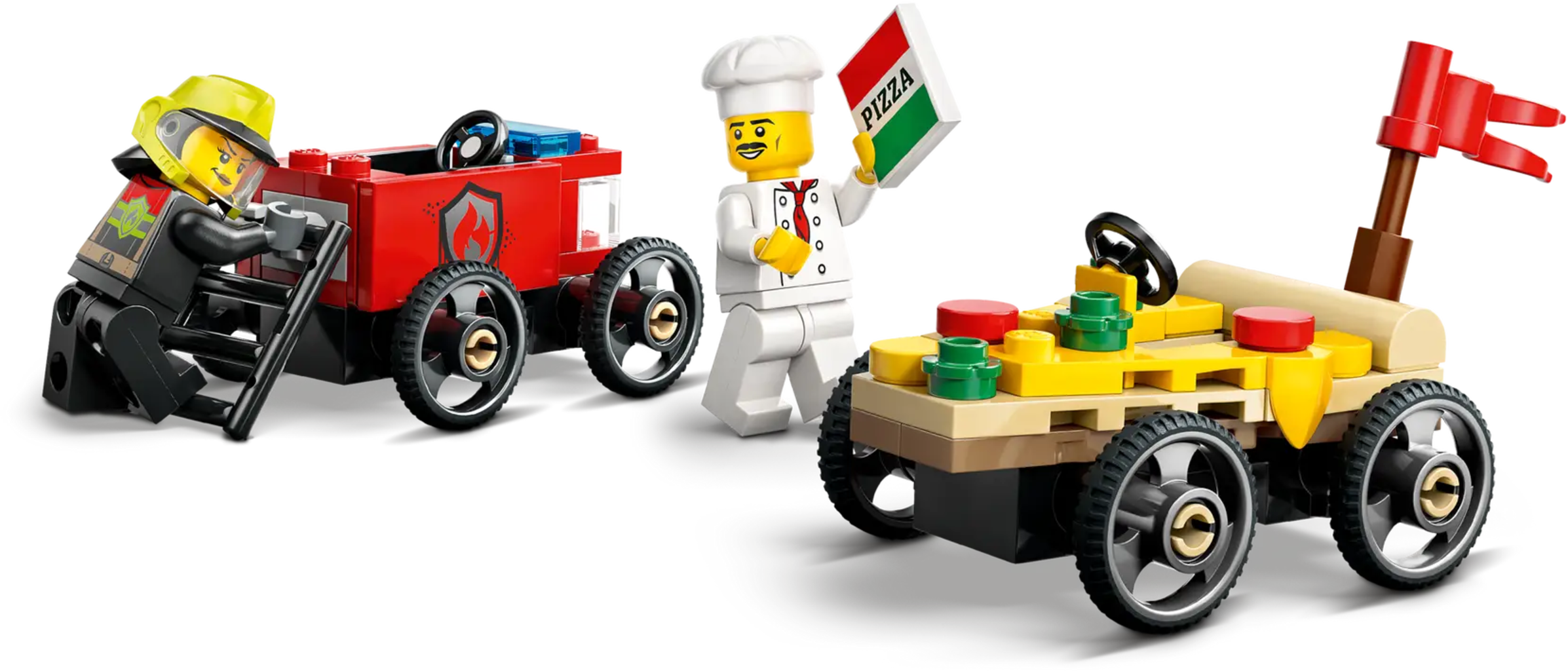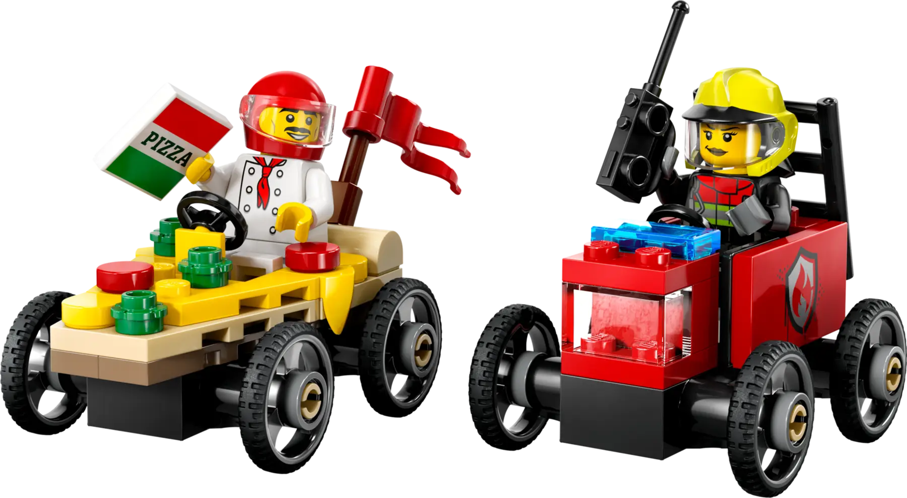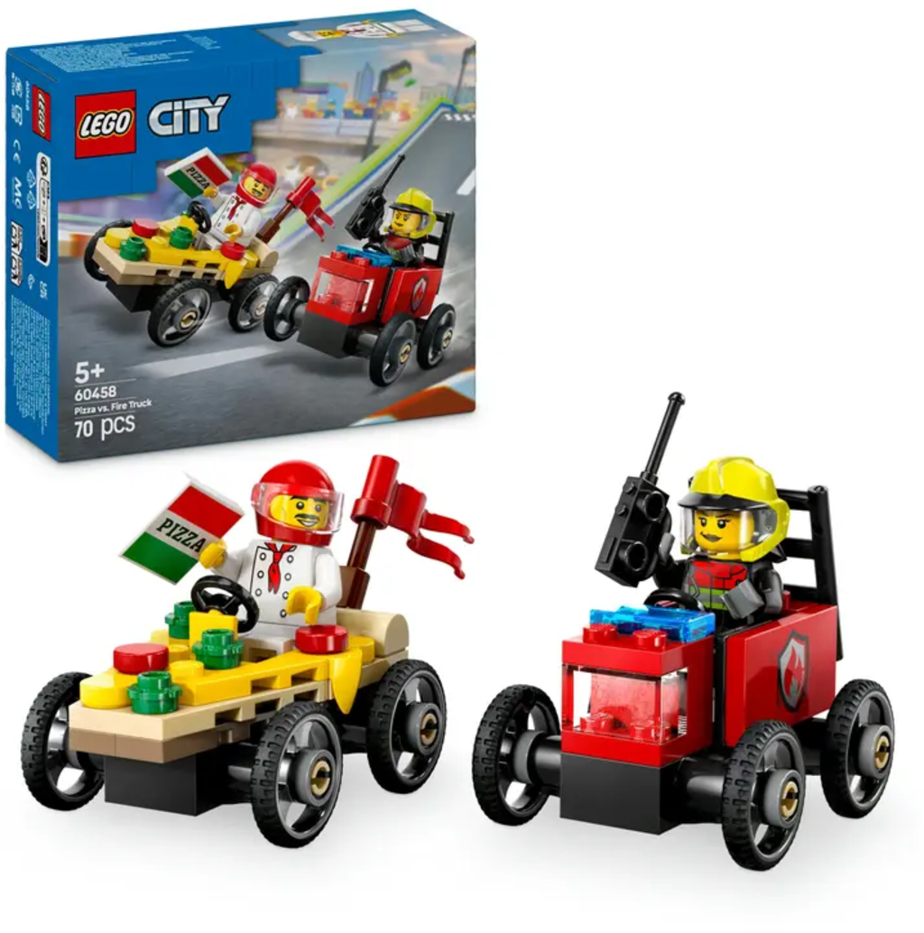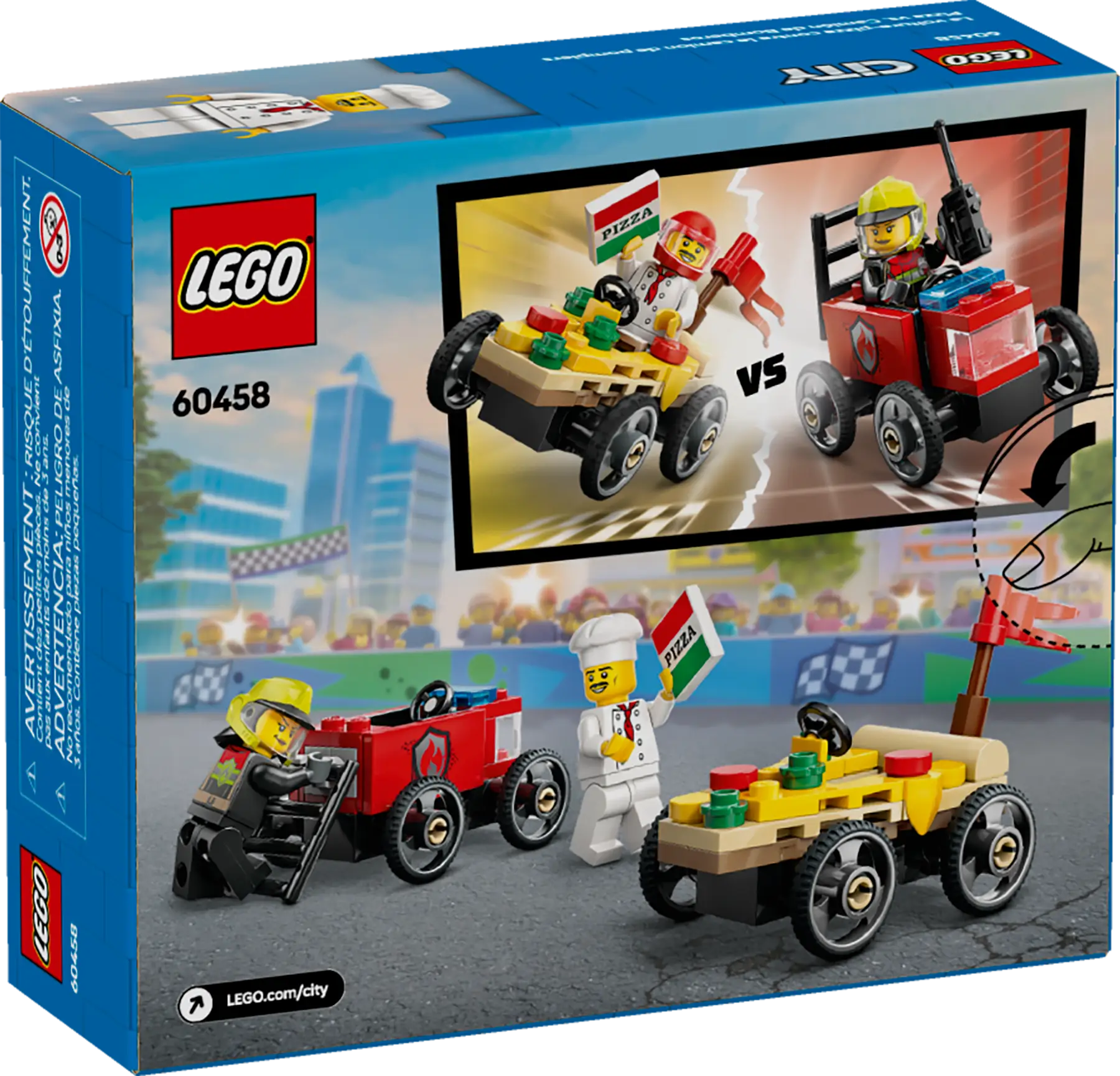 LEGO City - 60458 Bolides de Course : Camion de Pizza contre Camion de Pompiers