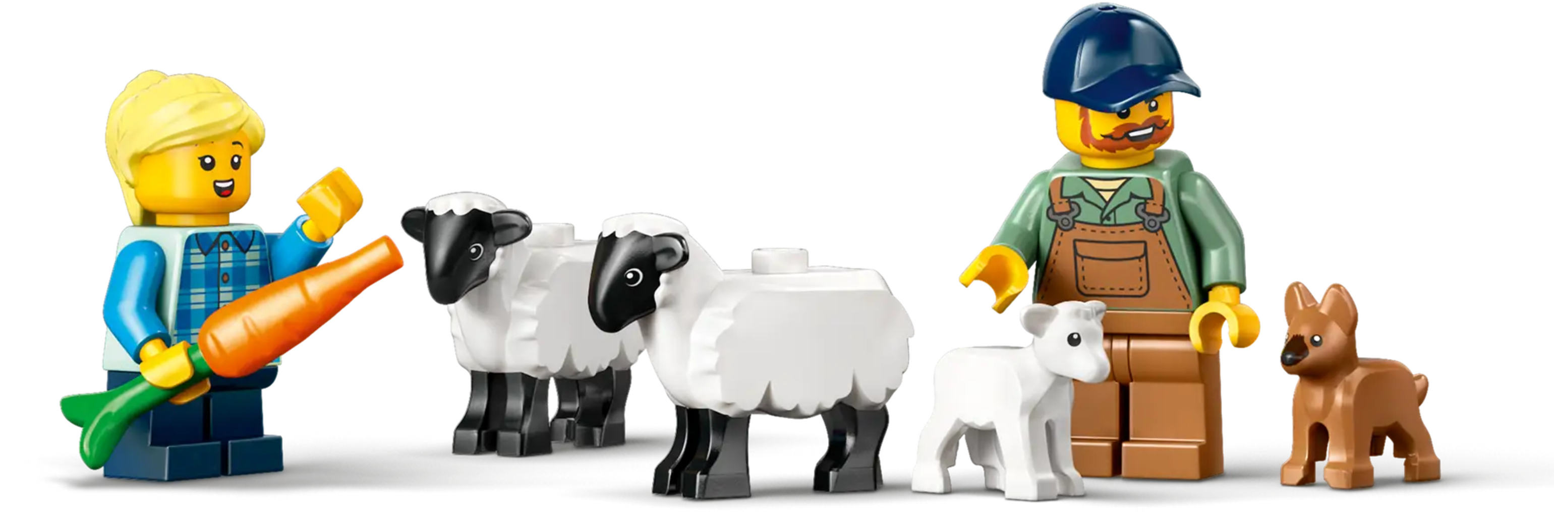 Avec 2 minifigurines, 2 moutons, un agneau et un chiot.