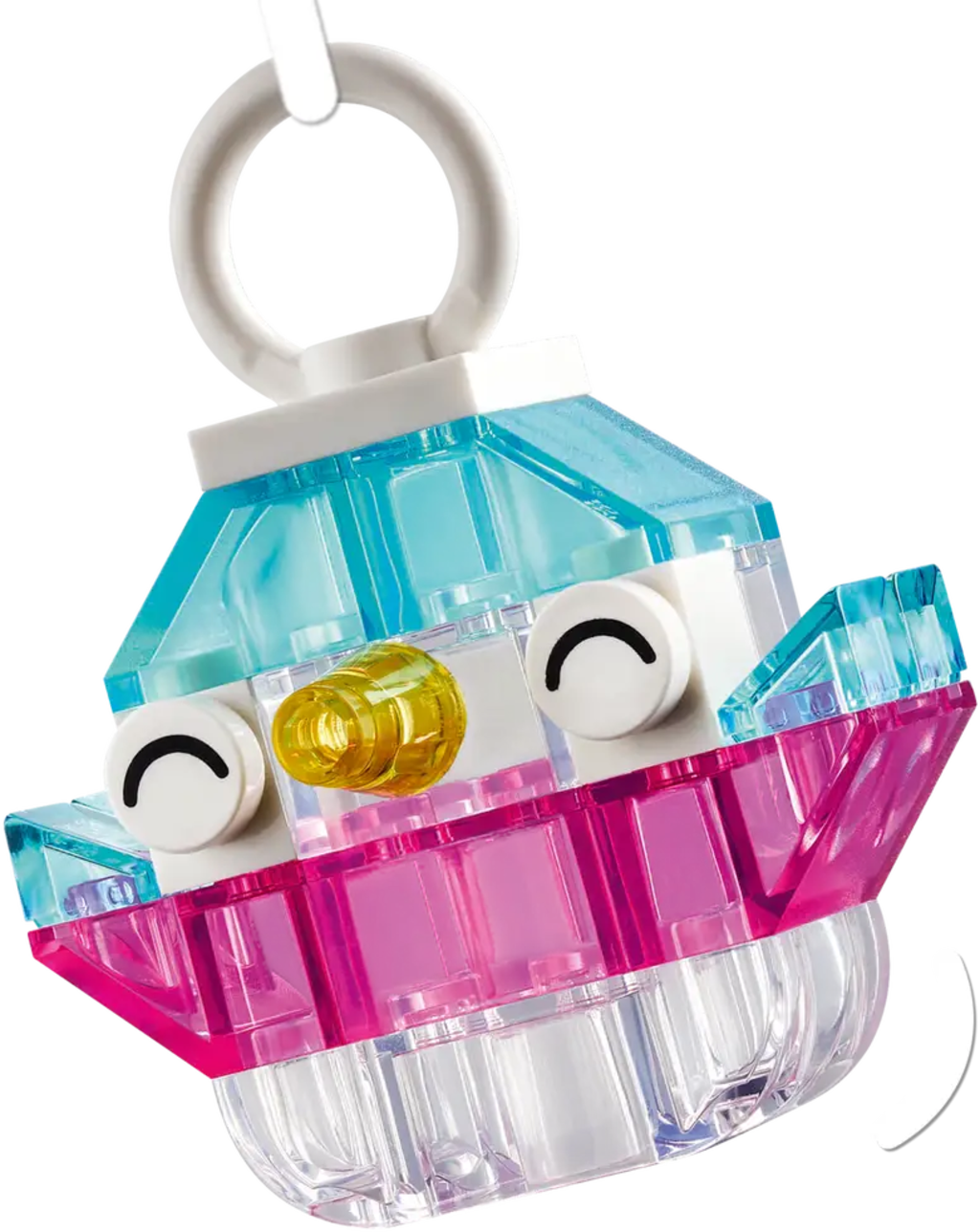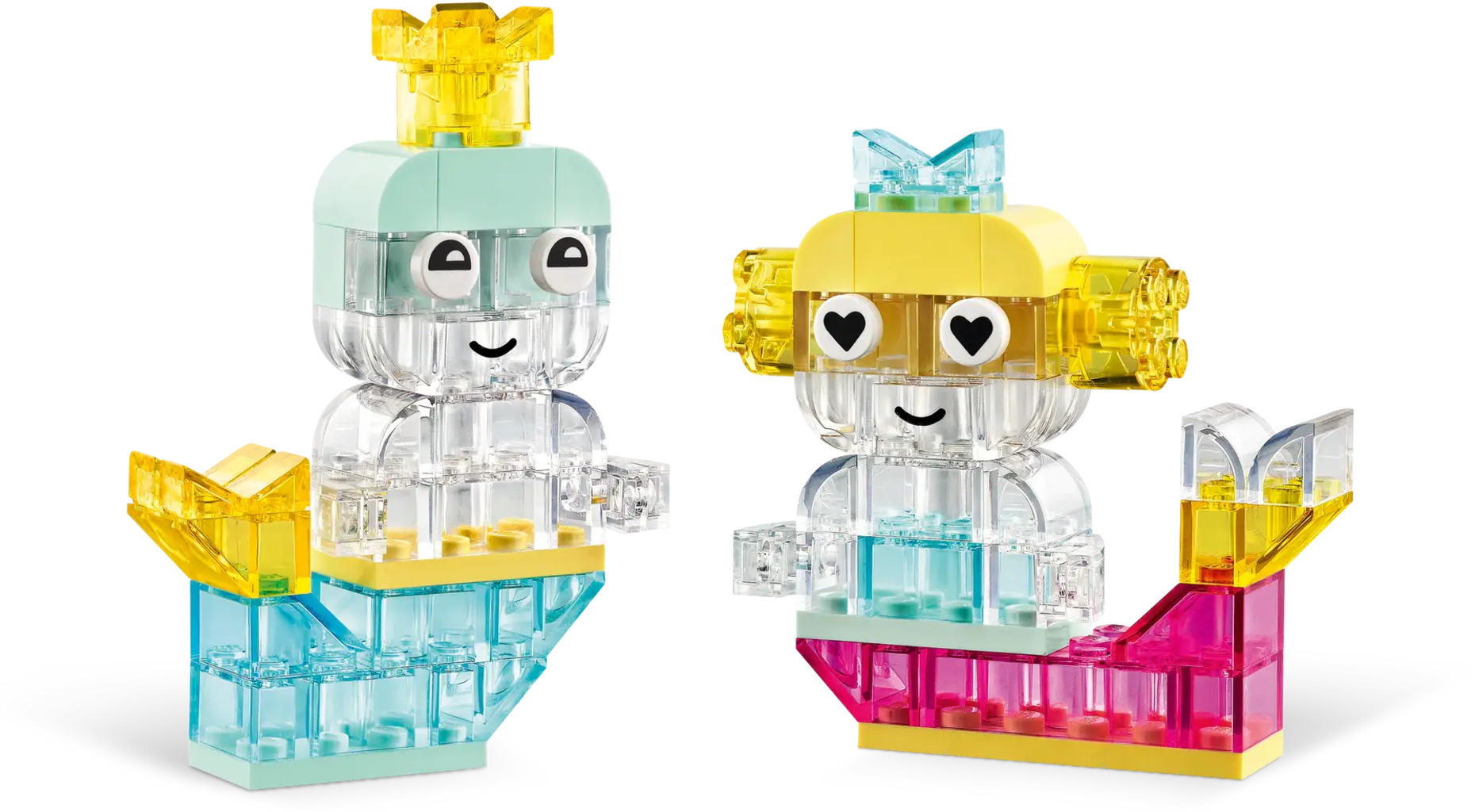Briques colorées translucides, yeux, bouches, briques de suspension...