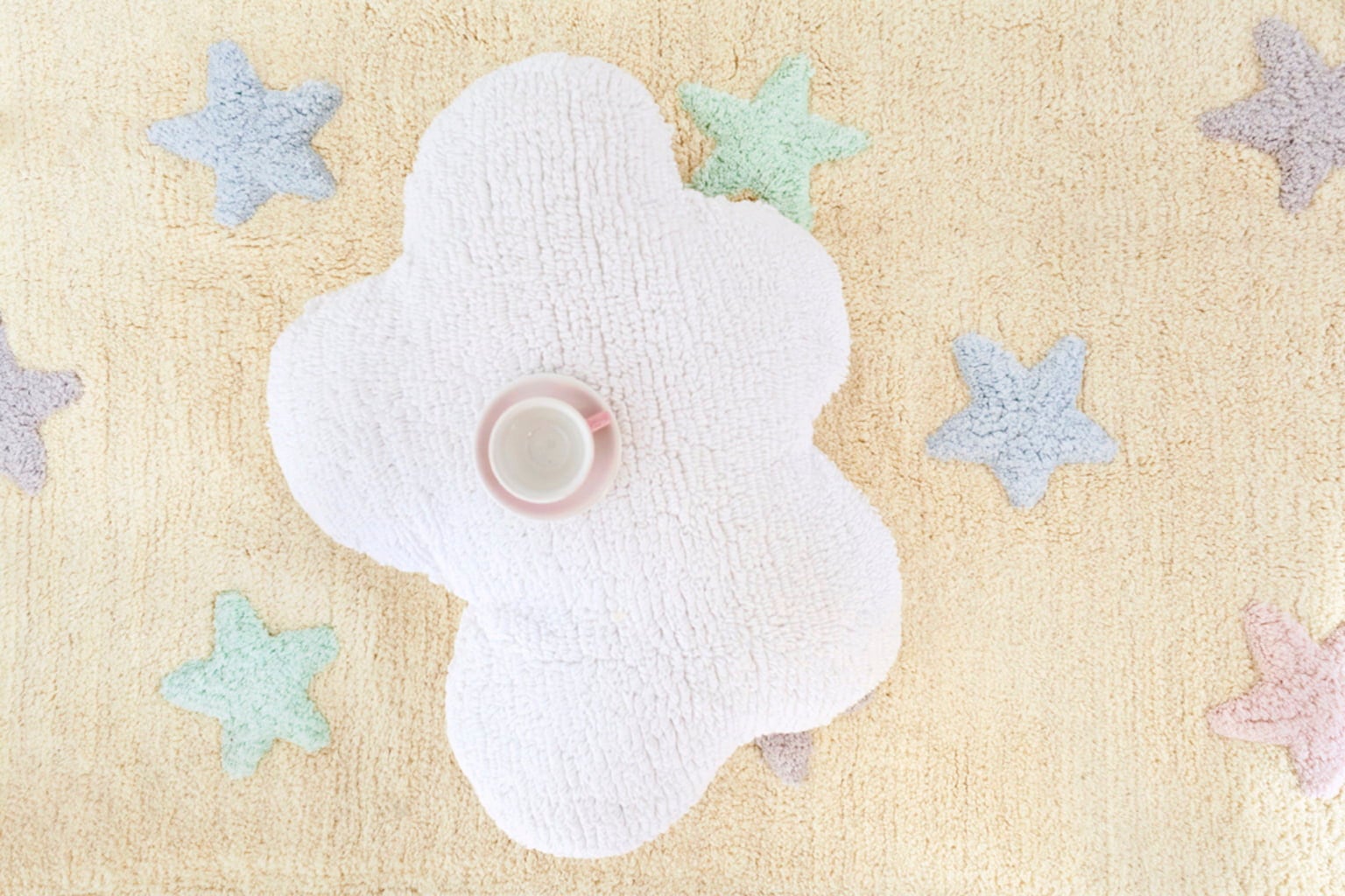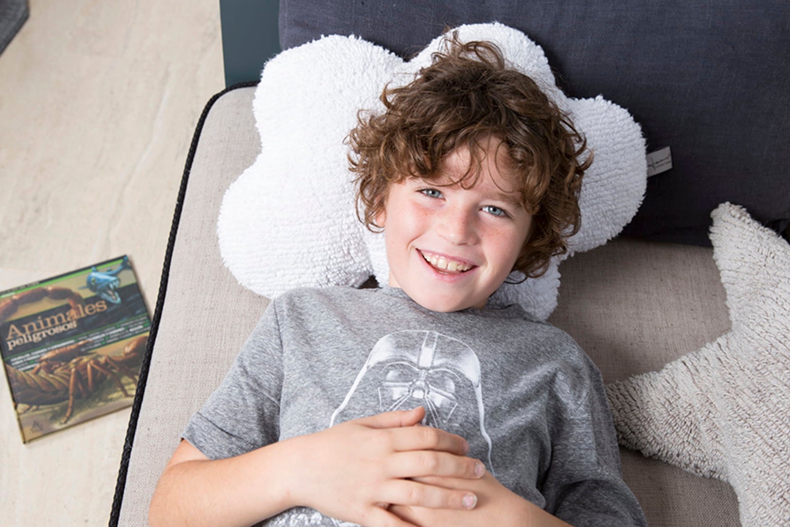 Ce coussin est comme un nuage moelleux. Il sera parfait pour rêver et se détendre. Avec son design unique, il créera en un rien de temps une atmosphère merveilleusement chaleureuse, dans laquelle chacun se sentira immédiatement chez lui. Ce coussin est l'accessoire parfait pour la chambre, le salon et la chambre des enfants. Il n'a ni boutons ni fermeture éclair, ainsi il est particulièrement adapté aux enfants.