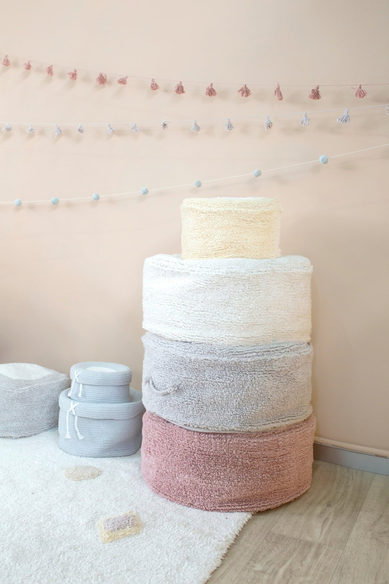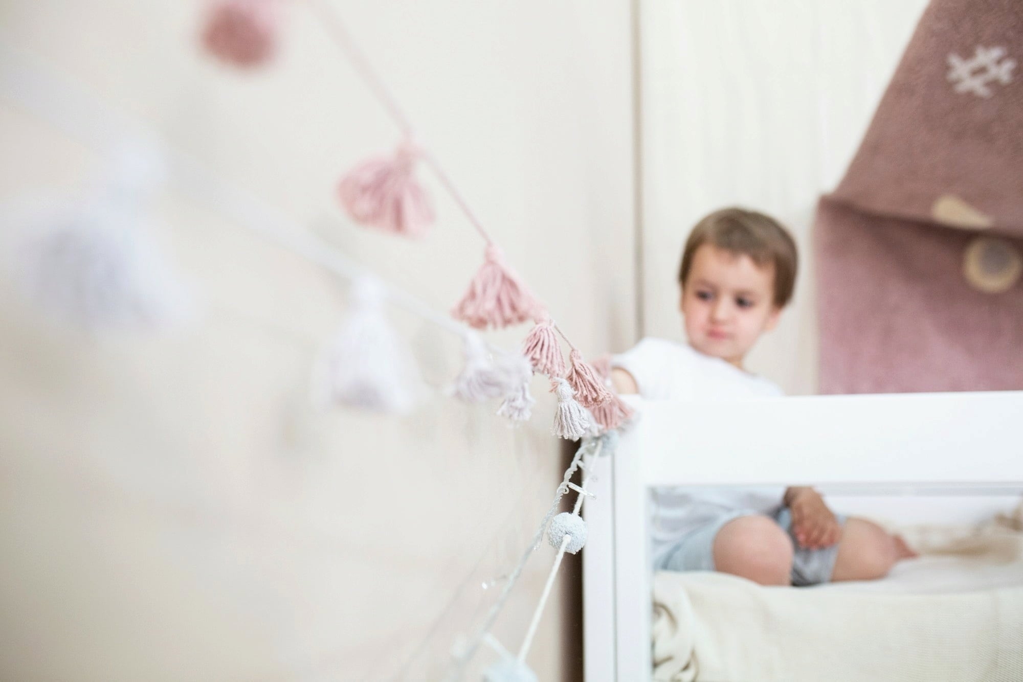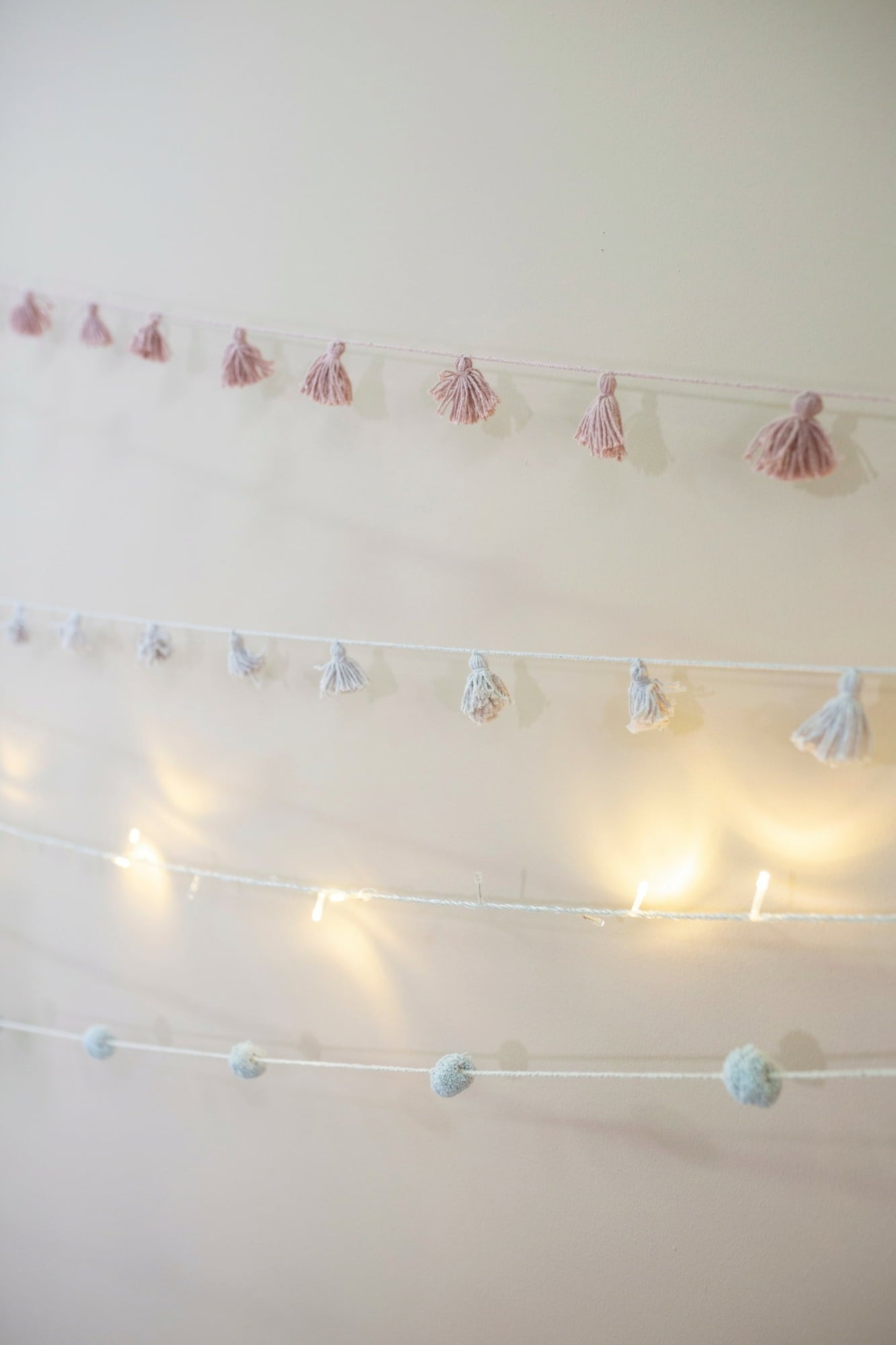 Cette guirlande minutieusement fabriquée à la main est une décoration enchanteresse pour la chambre de votre enfant. Avec ses pompons doux, elle a l'air juste magique et elle apportera un style irrésistiblement ludique à la chambre de bébé en un rien de temps.