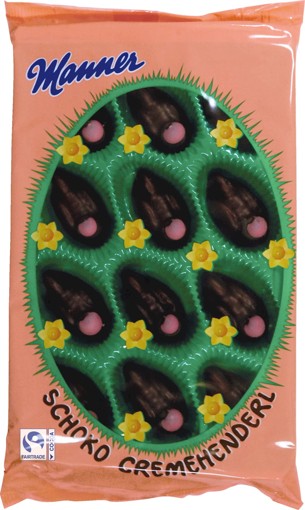 Ces petites poules en chocolat de Manner font partie des grands classiques de Pâques comme les œufs ou les lapins ! Elles sont fourrées avec de la pâte à sucre à la fraise et enrobées de déliceux chocolat noir.