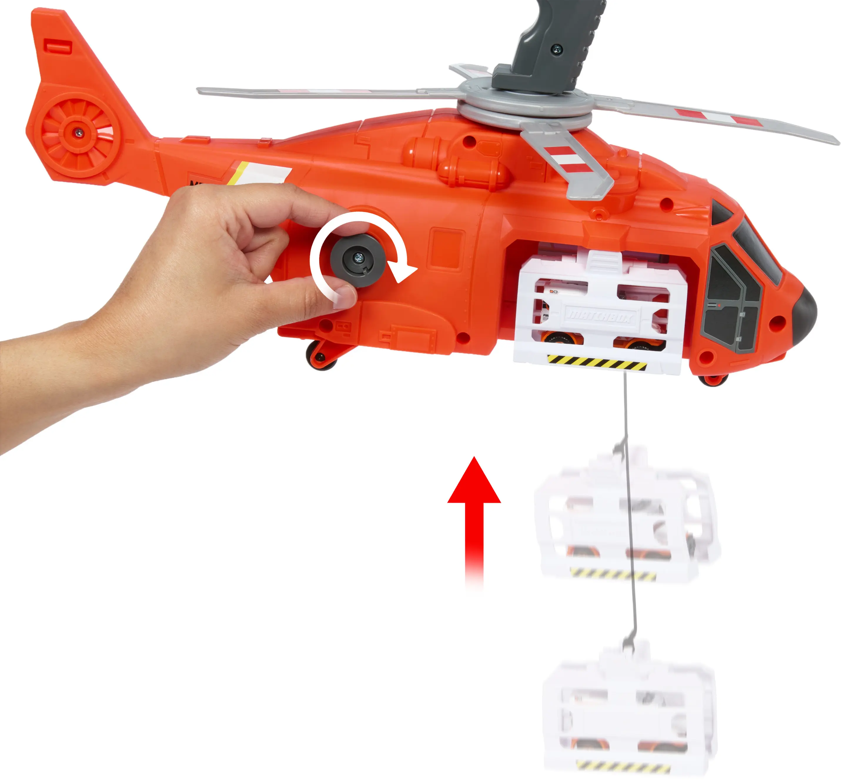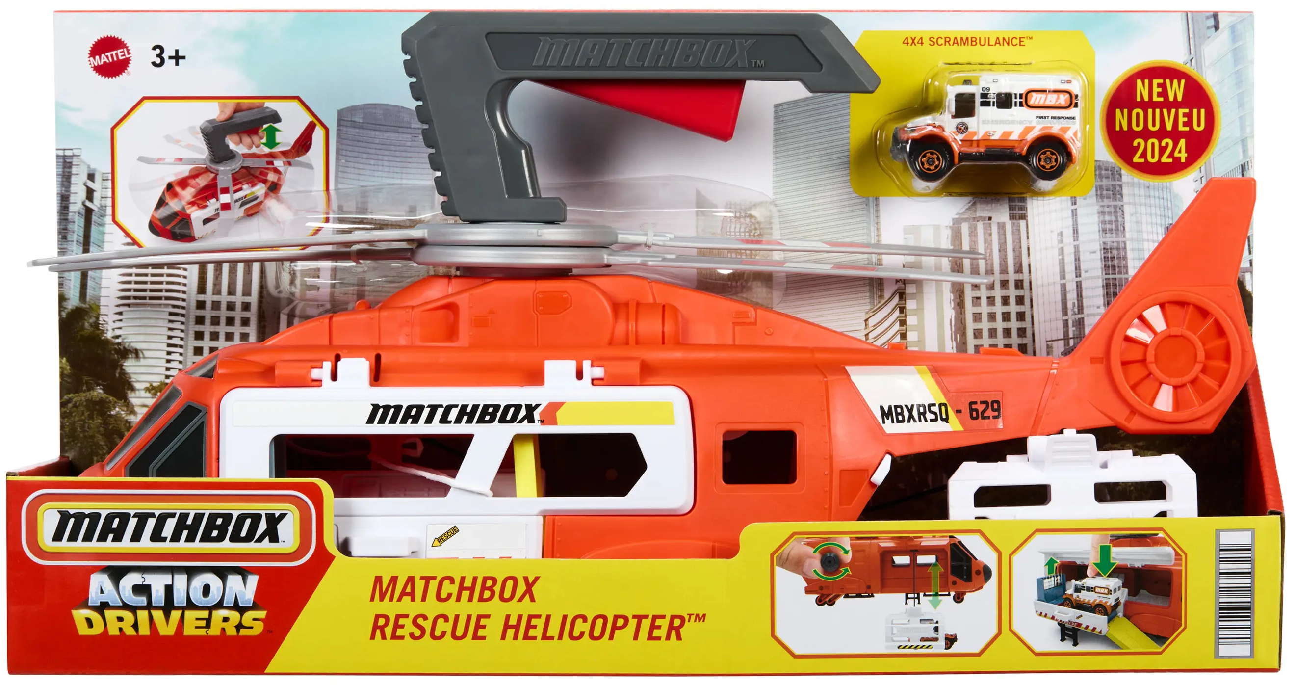 Matchbox Action Drivers Hélicoptère de sauvetage, hélicoptère de 40 cm avec véhicule de sauvetage jouet Die-Cast à l'échelle 1:64