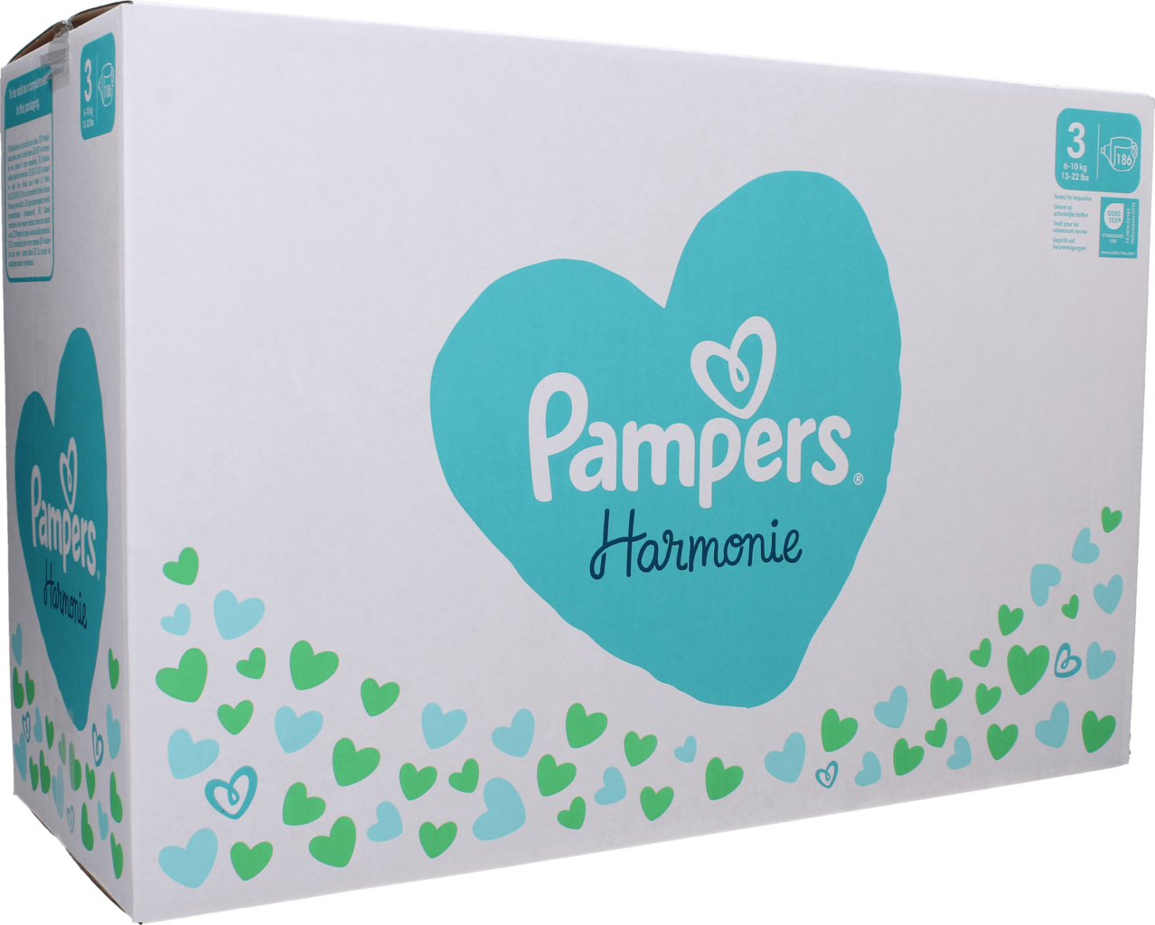 Pampers Couches Harmonie Taille 3, 186 pièces