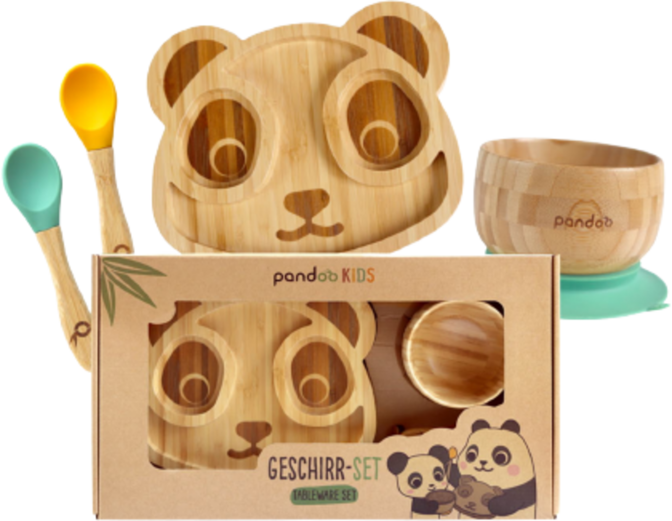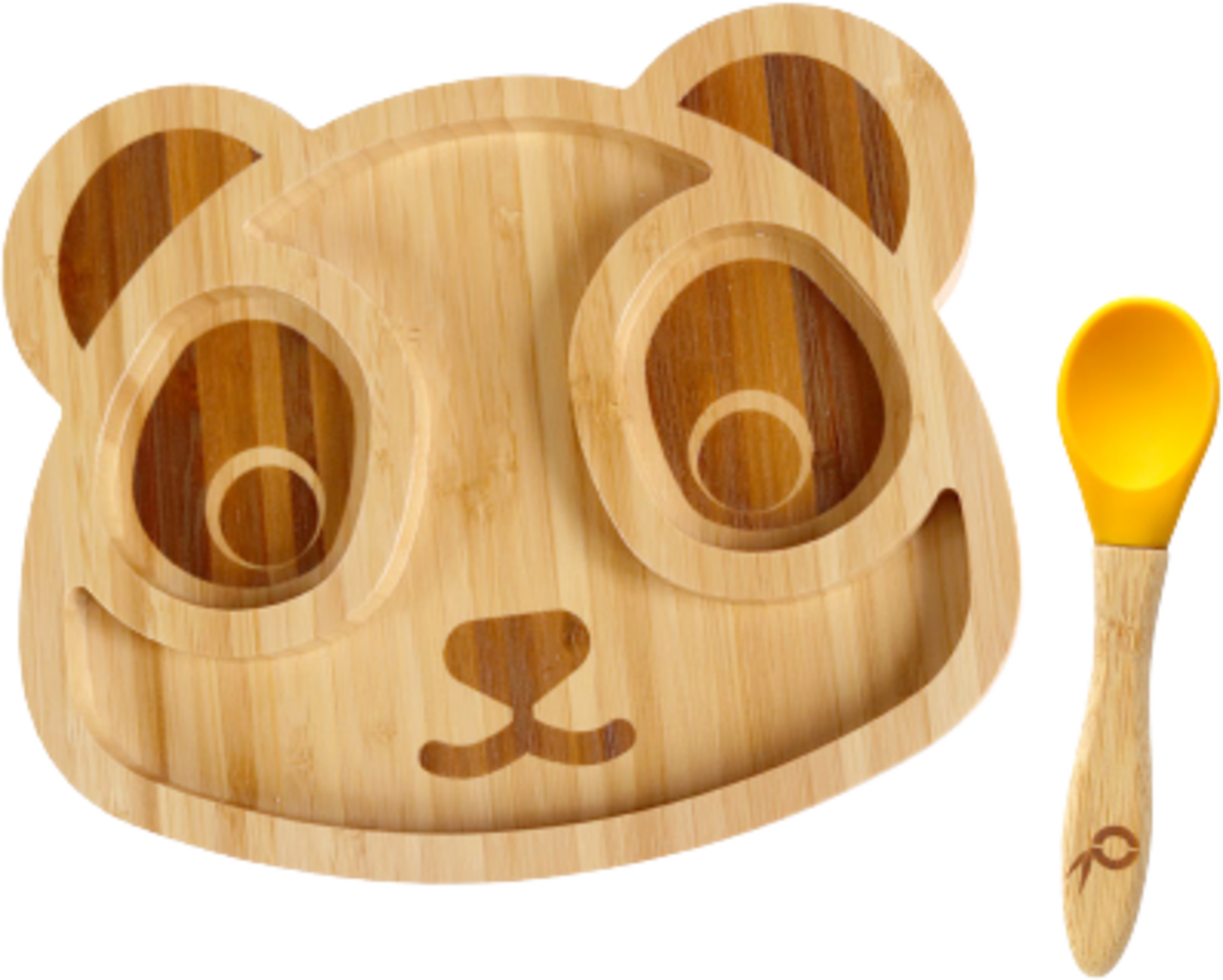 L'ensemble conçu avec le plus grand soin, se compose d'une assiette en bambou en forme de panda et d'un bol en bambou, avec un revêtement en silicone antidérapant sur le dessous qui les maintient fermement en place sur la table.