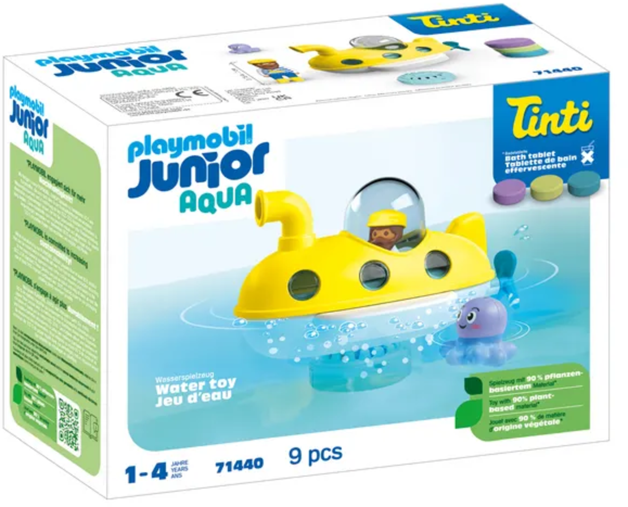 - Accessoires : 1 sous-marin avec hélice et dôme détachable, 3 tablettes effervescentes pour le bain Tinti