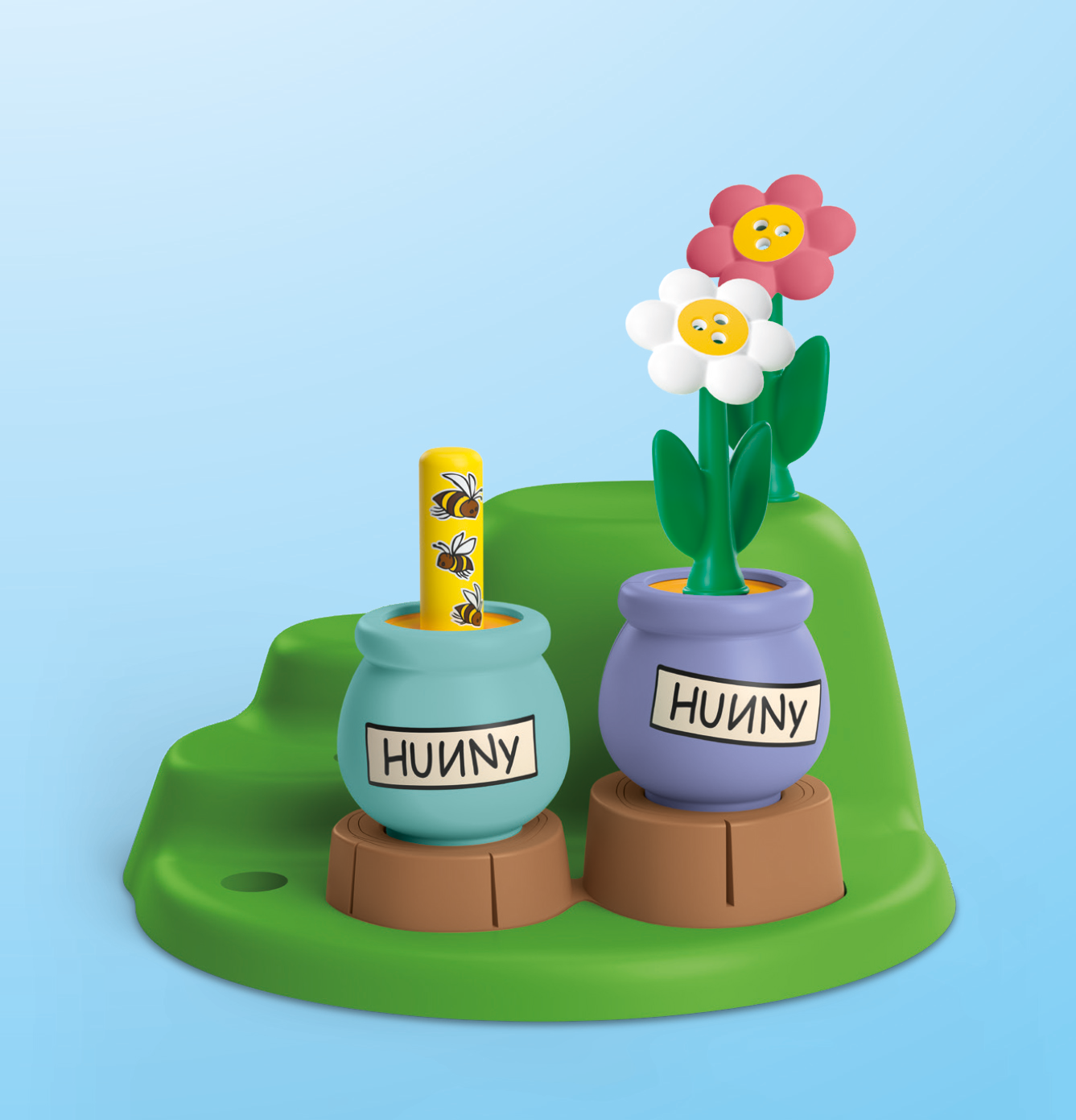 - Accessoires : 1 jardin d'abeilles avec grotte et pots de miel, 1 toboggan, 2 bâtons d'abeilles, 2 fleurs à empiler