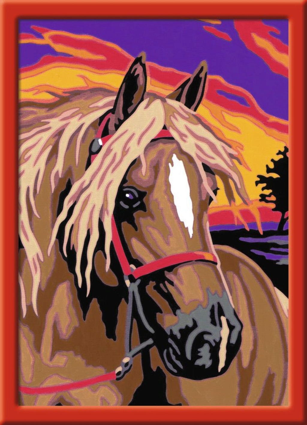 Ce superbe kit de peinture ravira à coup sûr tous les petits fans de chevaux. Grâce aux lignes colorées et aux zones numérotées, un tableau époustouflant prend forme progressivement, mis en valeur par le cadre inclus. Cette expérience réussie éveillera certainement le plaisir de la création artistique.