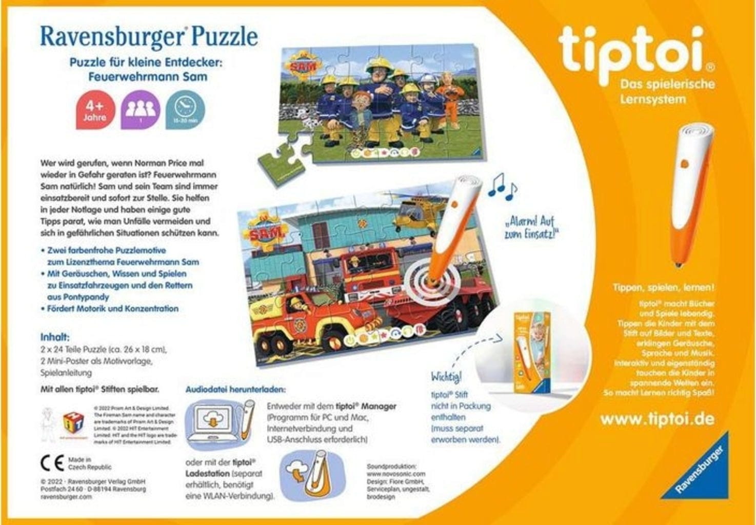 Ravensburger tiptoi - Lot de puzzles pour les jeunes explorateurs - Sam le pompier