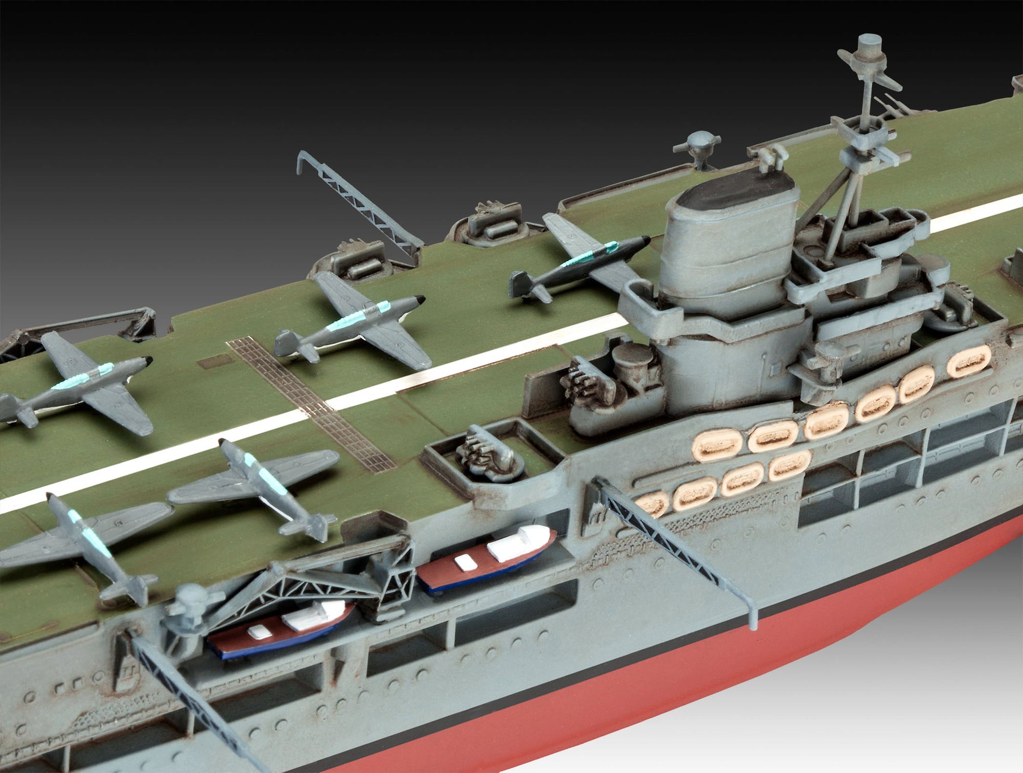 Maquette du porte-avions HMS Ark Royal, connu pour la chasse au cuirassé allemand Bismarck.