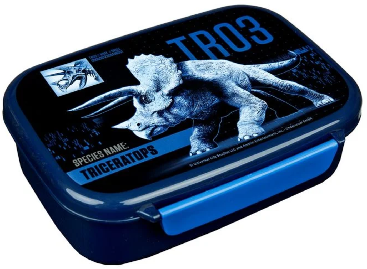 Avec cette boîte à goûter Jurassic World, votre enfant se réjouira encore plus de sa prochaine pause. Elle représente un puissant tricératops avec sa dangereuse couronne de cornes pointues.