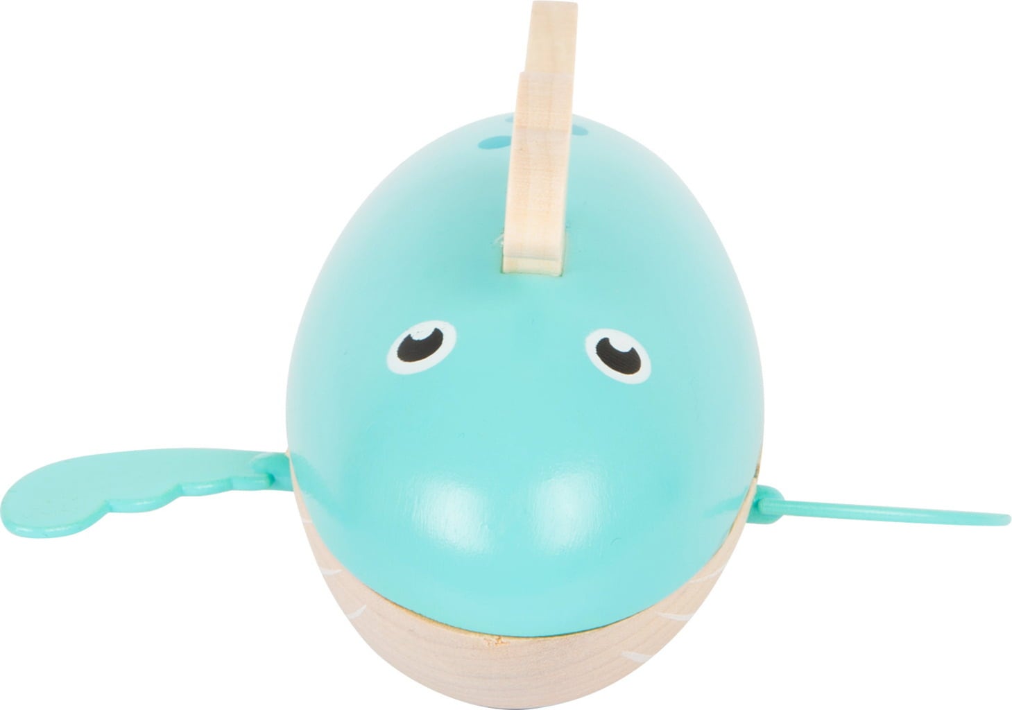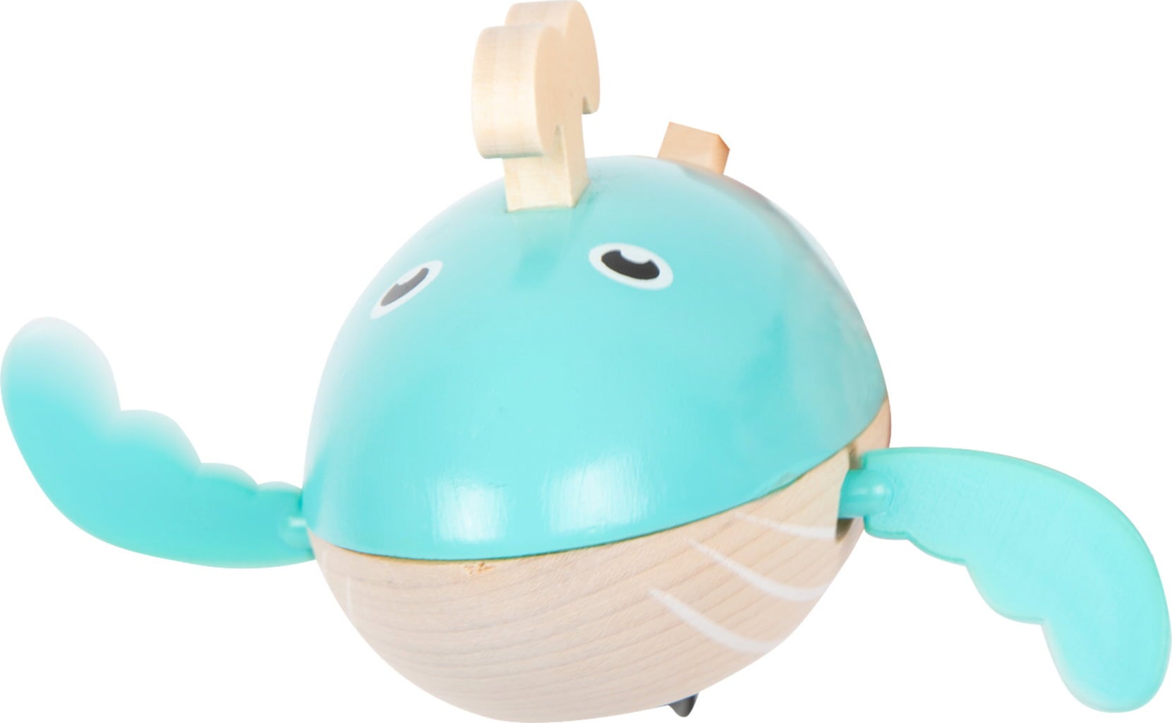 Préparez-vous pour des aventures marines : avec cette baleine en bois à remontoir, chaque moment dans l’eau devient un vrai plaisir ! Que ce soit dans la baignoire, la pataugeoire ou au bord d’un lac, ce mignon petit cétacé se déplace tout seul à la surface pendant que ses nageoires tournent joyeusement. Grâce à son mécanisme ingénieux, les enfants découvrent de manière ludique et captivante le principe de cause à effet.