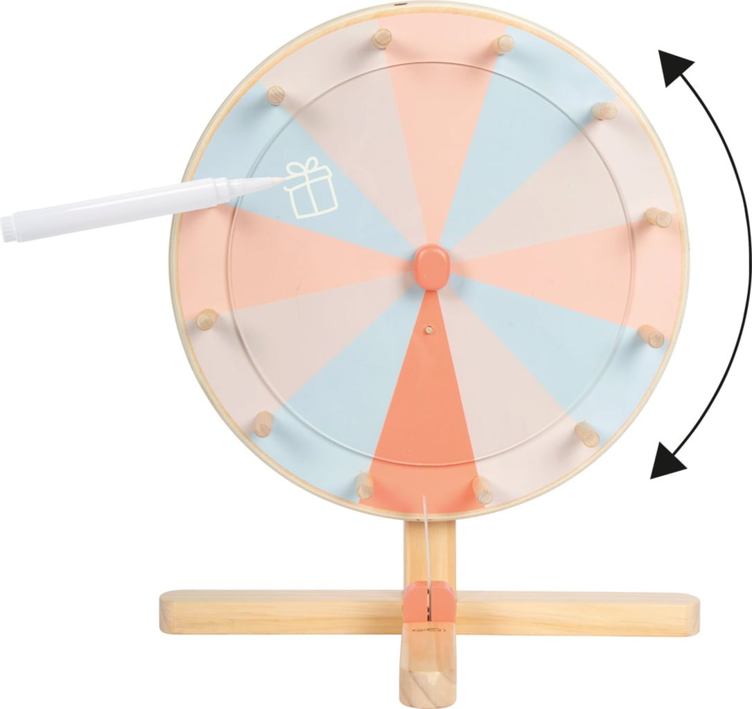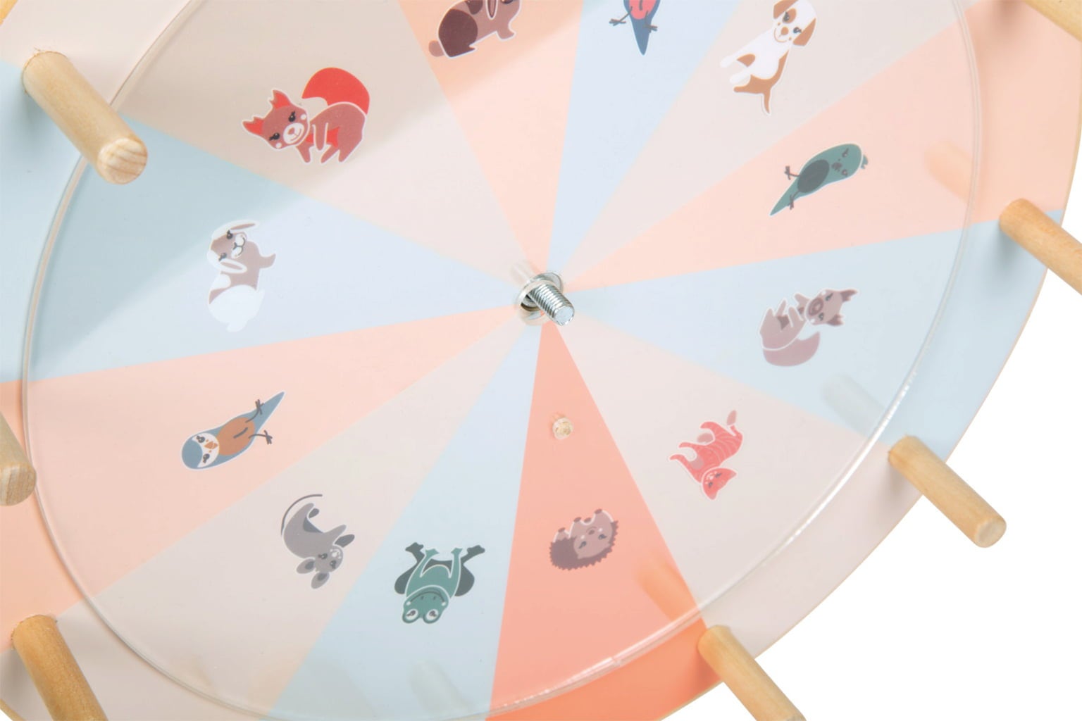 Anniversaire d'enfant, fête d'école ou soirée jeux en famille : cette roue de la chance joliment décorée émerveille les enfants à coup sûr ! Avec ses deux disques à motifs adorables (animaux et chiffres) et son disque en verre acrylique inscriptible, elle offre une multitude de possibilités créatives. Il suffit d’écrire dessus avec le stylo fourni, de faire tourner la roue… et que le jeu commence ! Sa structure en bois robuste garantit une bonne stabilité, tandis que les motifs colorés d’animaux apportent instantanément de la bonne humeur.