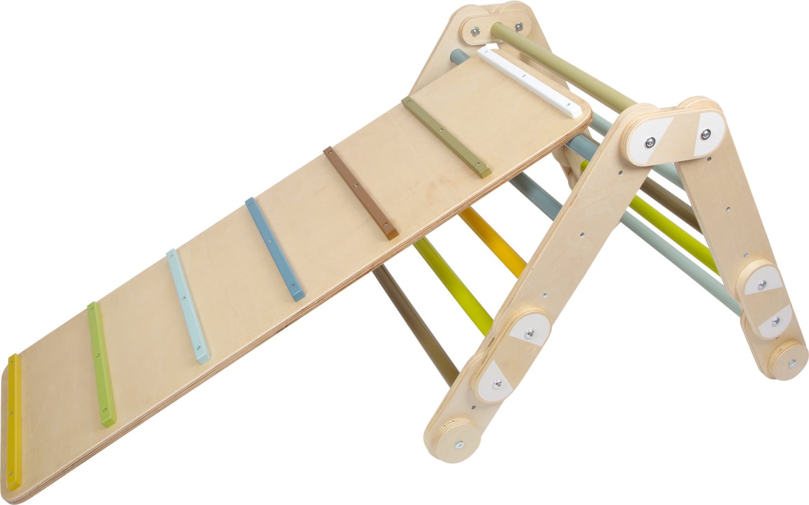 Un jeu d'escalade idéal pour la chambre d'enfant. Ce triangle aux barreaux colorés peut être configuré de plusieurs façons. Il se transforme en maison, grotte, tunnel ou pont, pour que les enfants puissent se dépenser même par mauvais temps.
