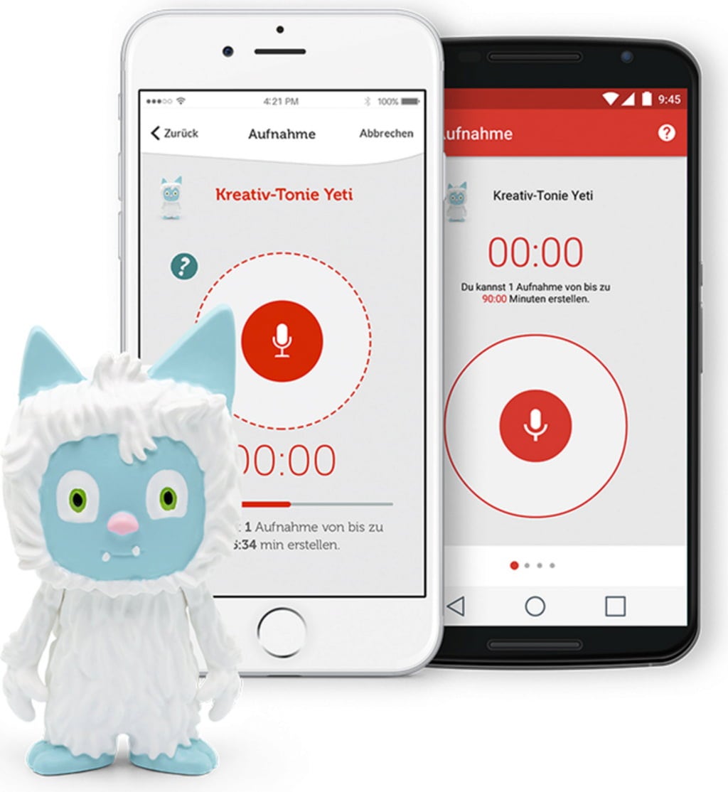Ce petit Yéti n'attend que d'être nourri d'histoires et de chansons. Le support de données vide offre jusqu'à 90 minutes d'espace pour votre propre programme audio. À réinventer au gré de votre inspiration. Grâce à l'application pour smartphone et au Toniecloud, vous pouvez même enregistrer vous-même des chansons et des histoires - pour les écouter encore et encore.