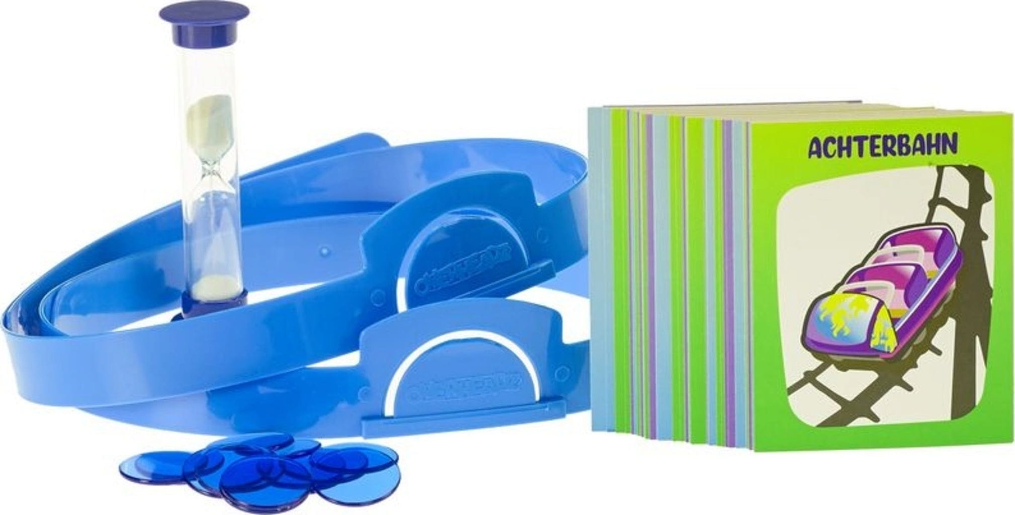 Contenu : 48 cartes illustrées en allemand, 12 jetons de jeu, 2 bandeaux réglables et 1 sablier (60 secondes)