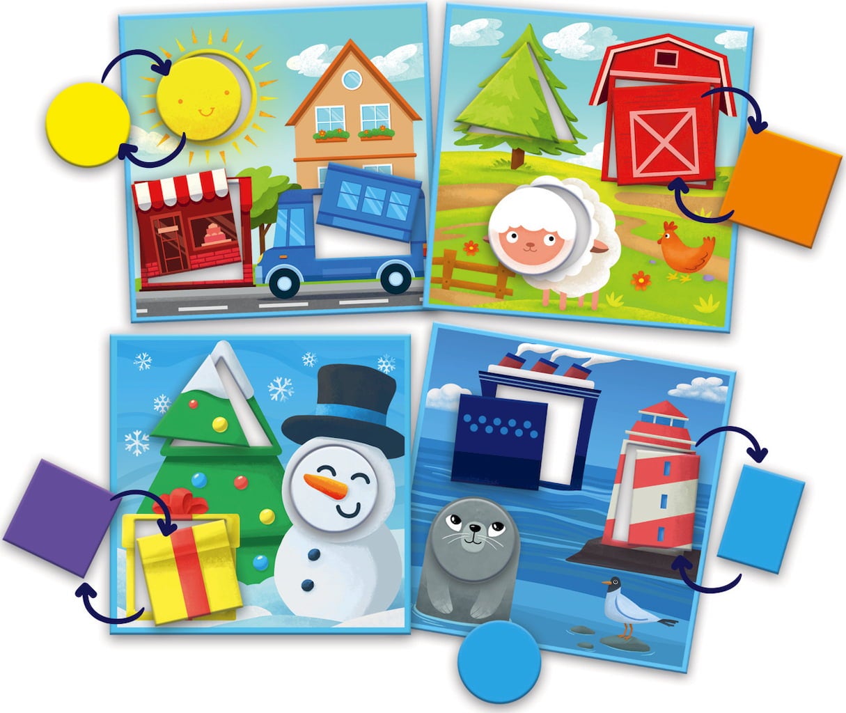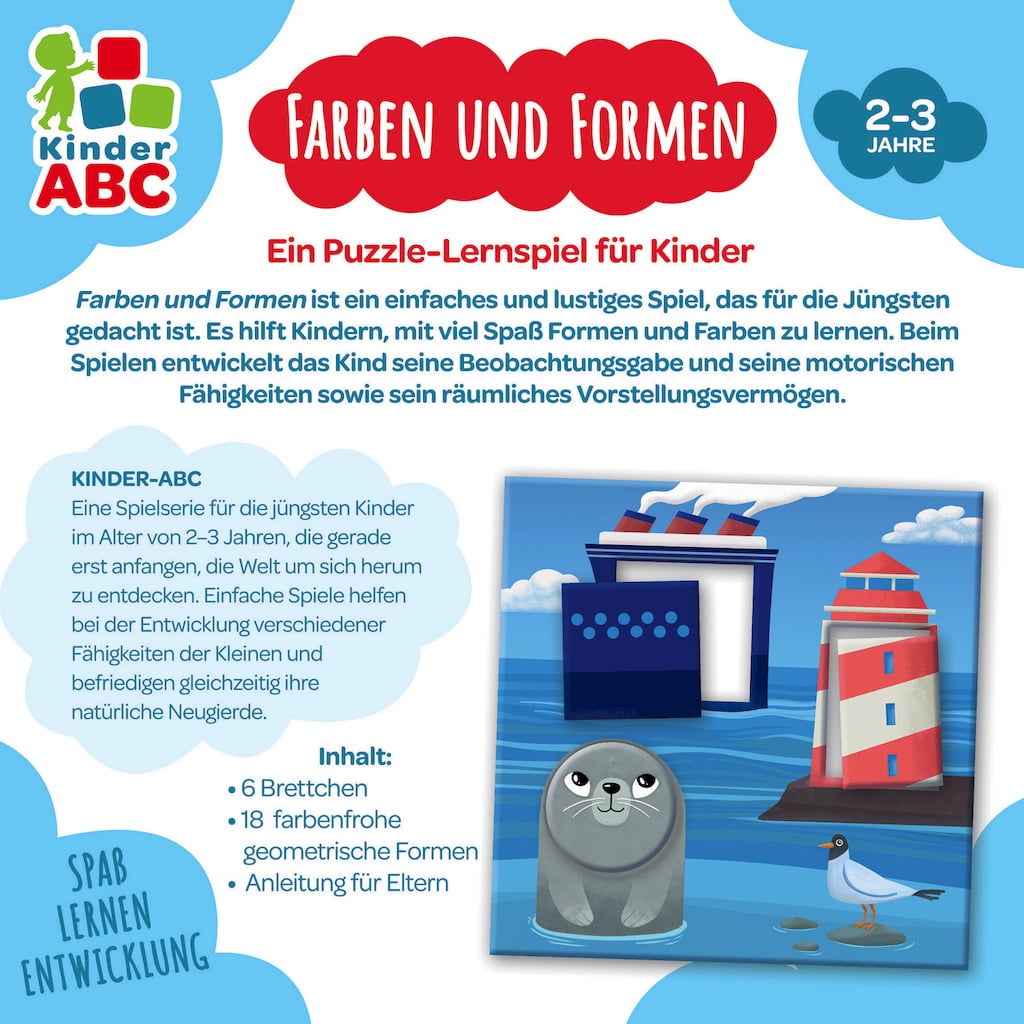 Découvre les formes et les couleurs - plaisir et apprentissage inclus ! De grands éléments en carton solide conviennent parfaitement aux petites mains des enfants !