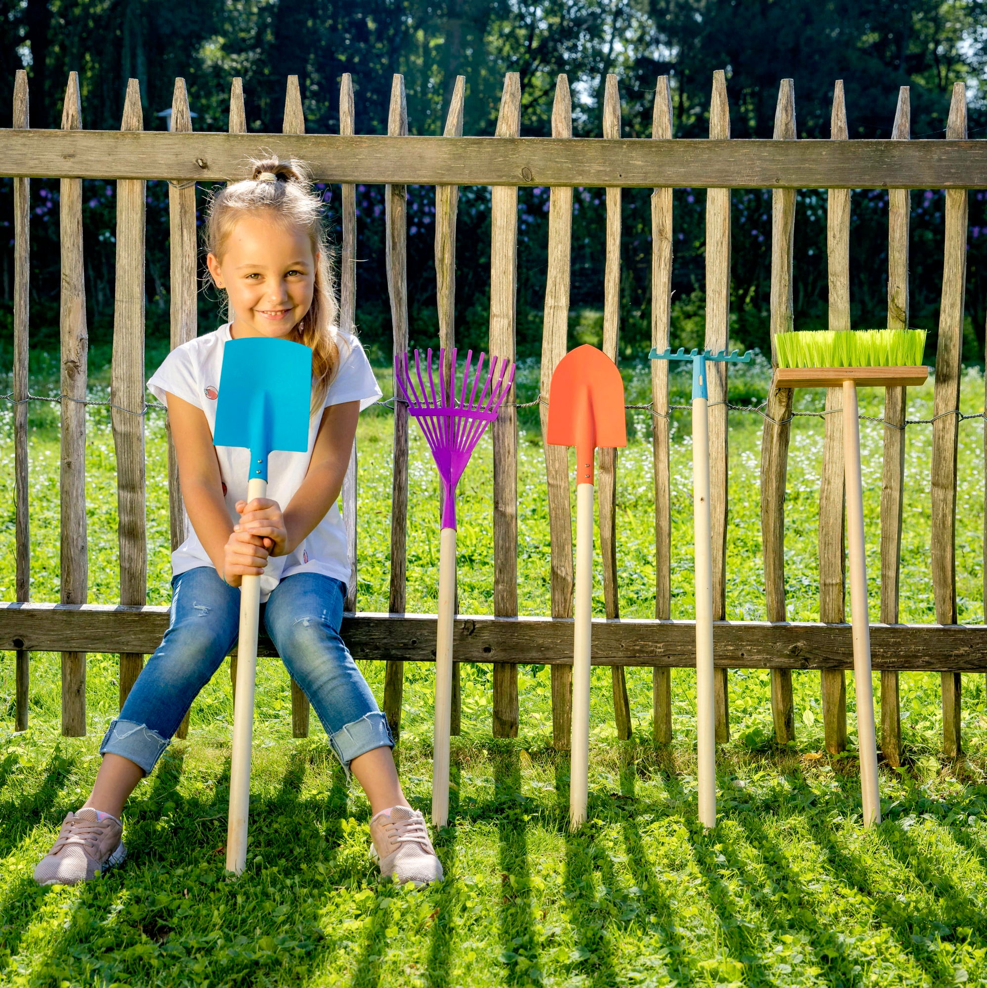 Un ensemble de cinq outils colorés pour initier les enfants aux joies du jardinage ! Les différents outils sont robustes et parfaitement adaptés aux petites mains des jardiniers en herbe qui se feront un plaisir de vous aider à ratisser les feuilles, creuser, balayer, etc. Idéal aussi pour une utilisation dans le bac à sable.