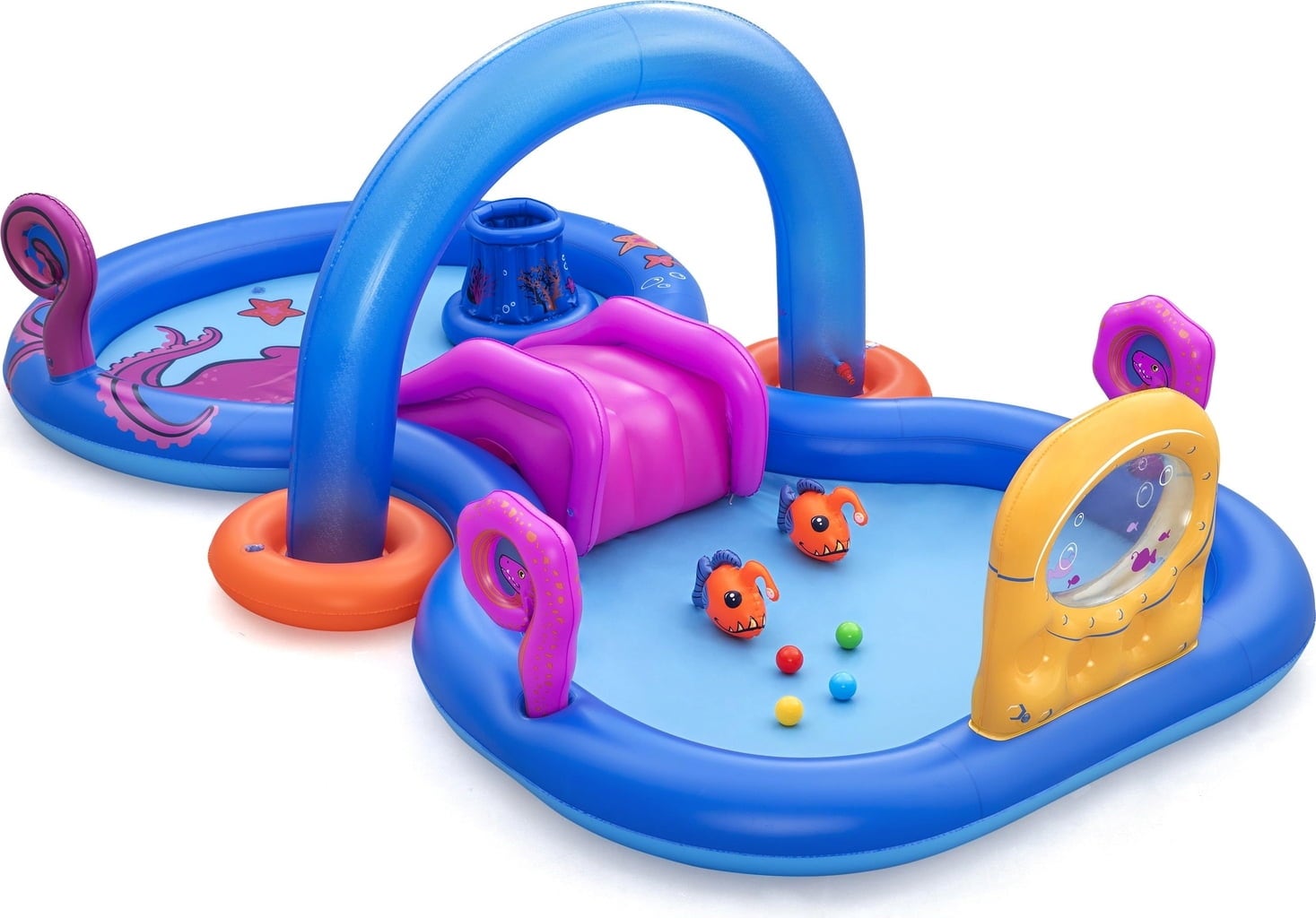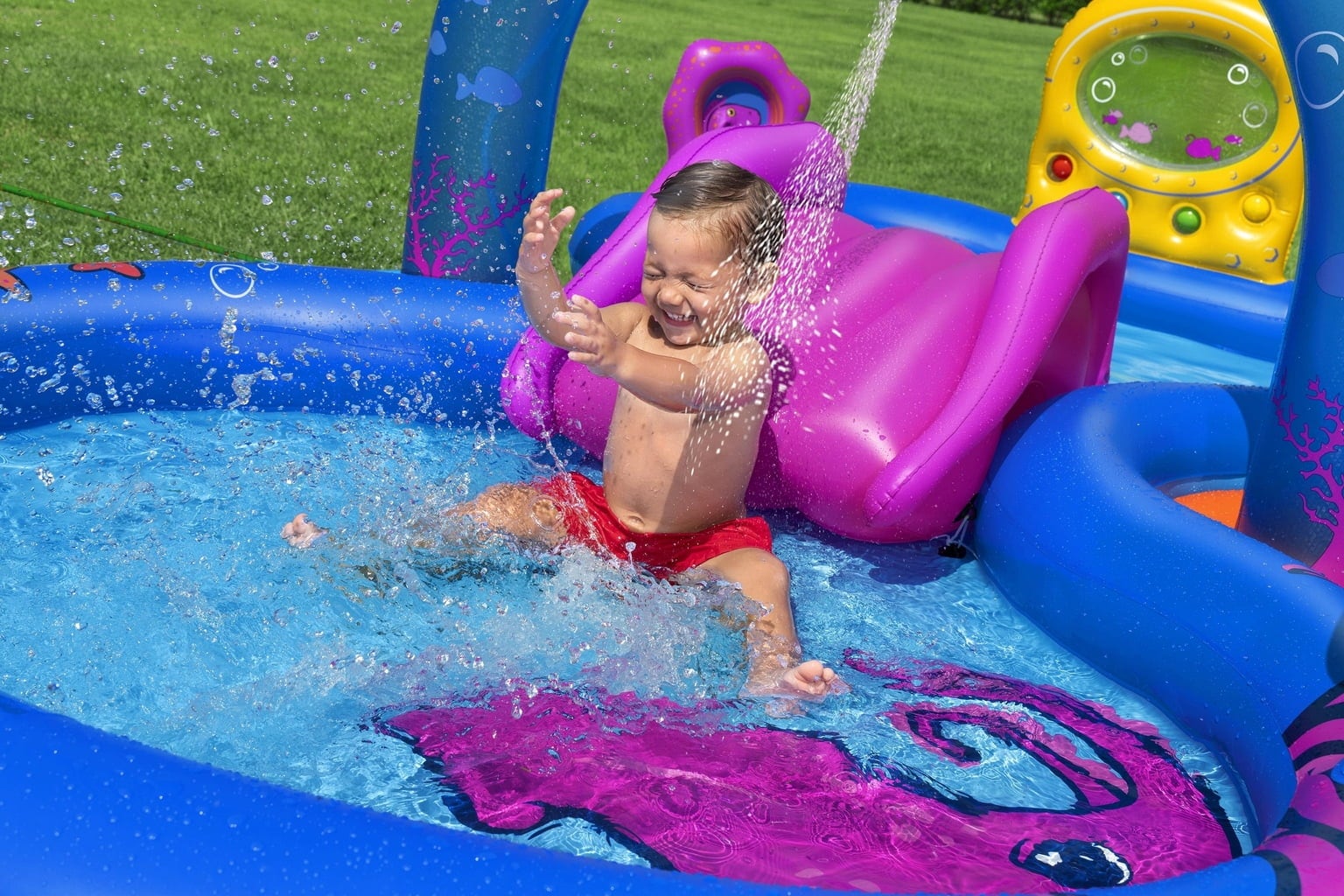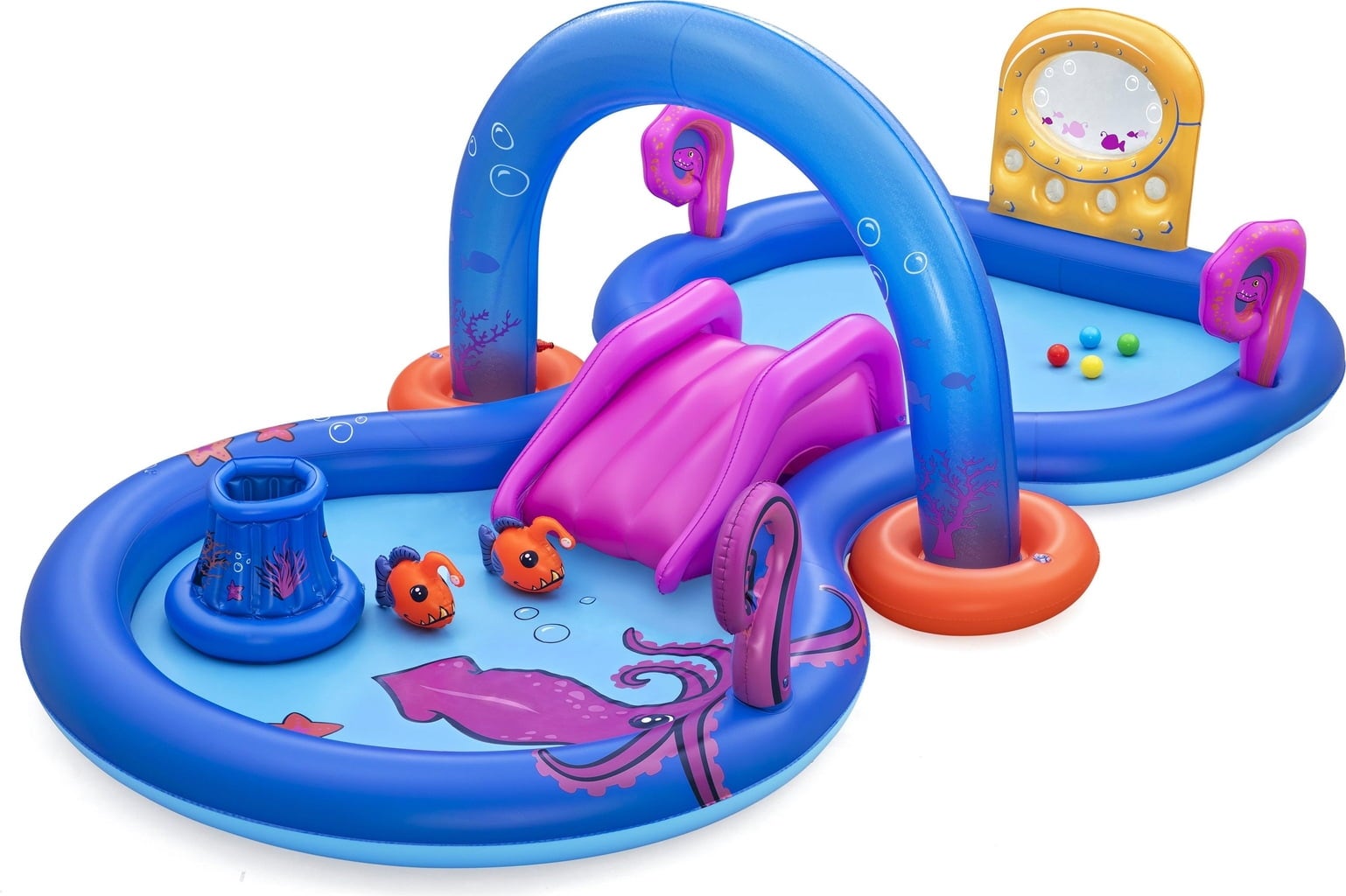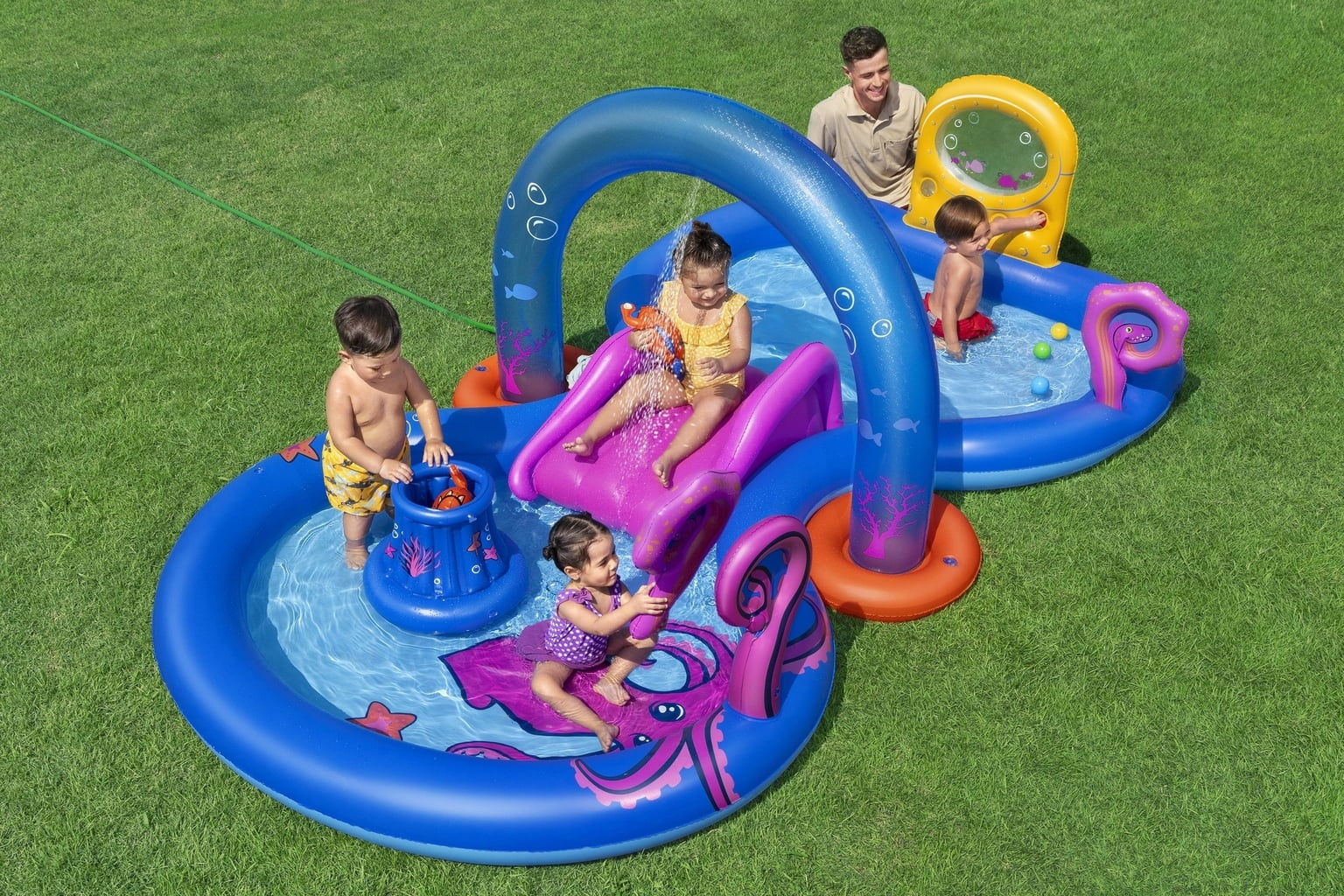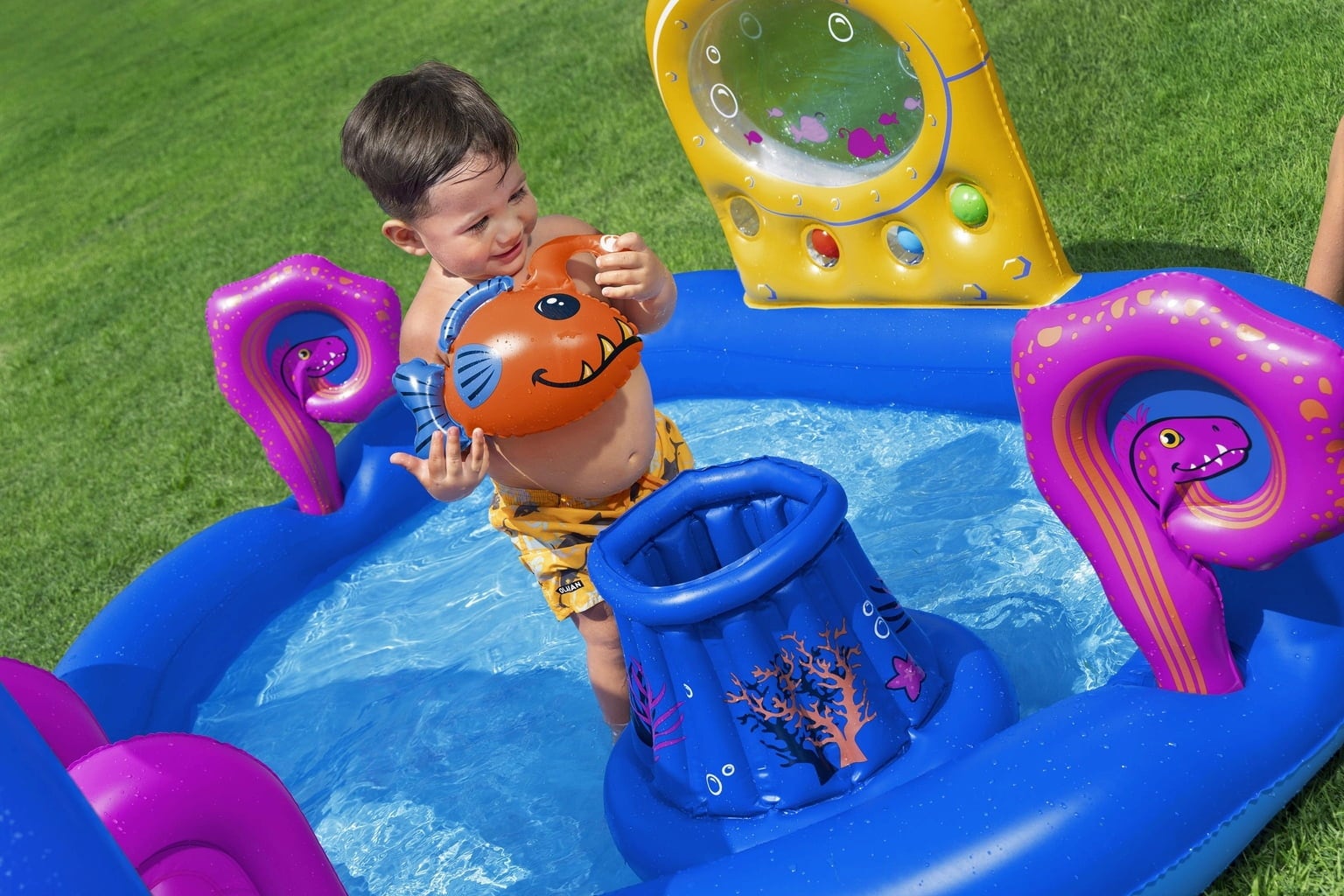 Con il playcenter Sea Odyssey di Bestway, il tuo giardino si trasformerà in una barriera corallina vivente, dove i tuoi bambini diventeranno coraggiosi esploratori delle profondità marine! Questo grande playcenter offre abbastanza spazio per immergersi in un altro mondo sottomarino.